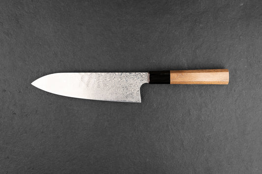 Hatsukokoro Ginyo Ginsan Damascus Santoku 180mm