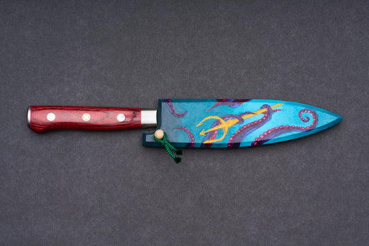 Mcusta Zanmai Classic Pro Damascus Flame Petty 90mm with Handpainted Saya Set
