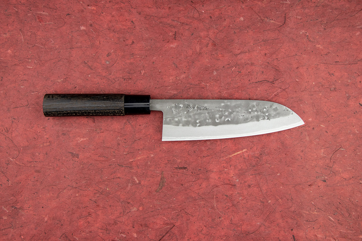 About the shape - Santoku means 'Three Virtues' or 'To solve Three Problems'. The three virtues are meat, fish and vegetables, or slicing, dicing and mincing depending on your interpretation. This means that the Santoku is an all-around knife, suitable for the amateur home cook and the professional chef alike. The height means good clearance for big hands, while the relatively short blade can be wielded by anyone.