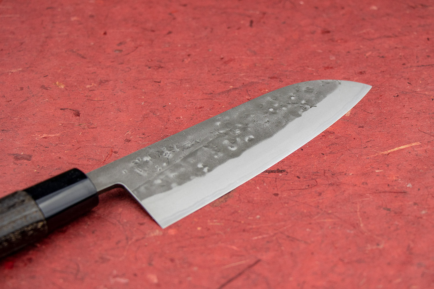 These were the first Fujimoto blades we carried; to this day, they remain a staff and customer favourite. Here’s why: some Japanese blades are made with carbon steel, which gets crazy sharp but can rust, while others are made from stainless steel, which is easy to care for but doesn’t quite have the same magic. These are the best of both worlds, made with a super hard carbon steel core, protected by an outer layer of stainless steel, so only the edge requires maintenance! It’s a genius way of making a knife, and the ‘nashiji’ finish, inspired by the look and feel of Asian pear skin, takes it over the top.
