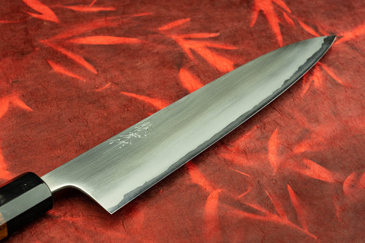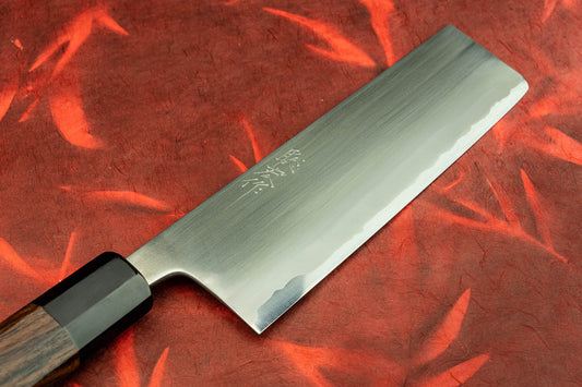 Shirogami is among the easiest of steels to sharpen and is capable of achieving the most perfect mirror finished edge. This steel can be forged to incredible hardness, which translates to exceptional edge retention. Why do you think knife and sword makers love this steel?