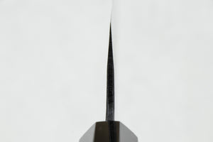 About Hatsukokoro Kumokage -Hatsukokoro works with a wide variety of artisans in their local area, from blacksmiths to knife sharpeners and handle makers. By working with folks who have mastered their craft, each aspect of the knife is carefully curated. Their Kumokage line offers the high-end performance and good looks that Japanese carbon steel is known for, at an incredibly agreeable price. With a little extra care, blue carbon steel gets incredibly sharp and keeps a spectacular edge. The dark wood handle gives it an elegant look, while the octagon shape is exceedingly comfortable to hold while you cut.