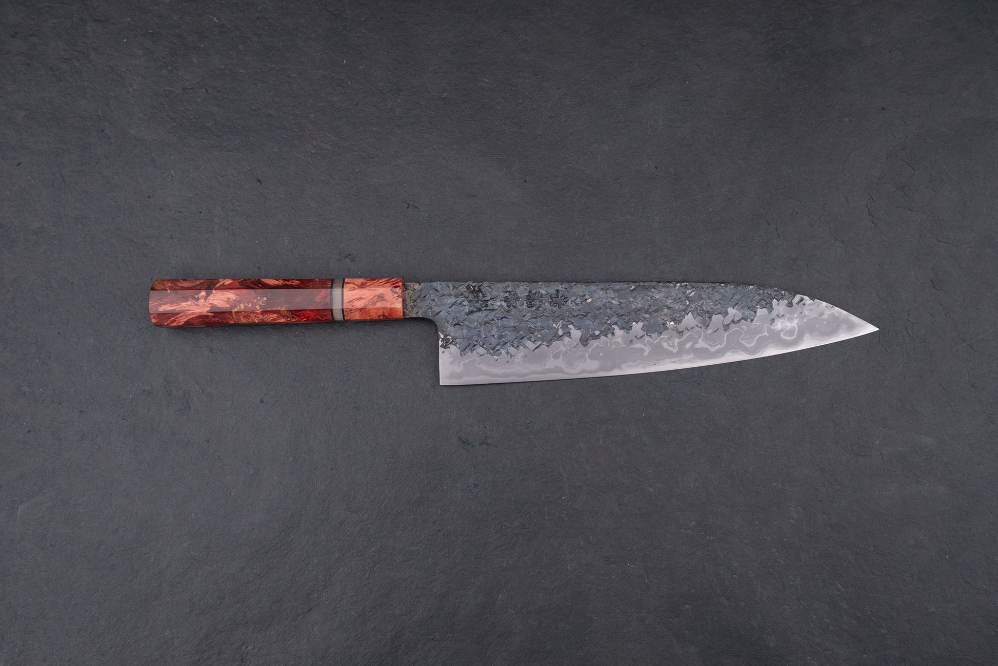 About Manaka Hamono - Kisuke Manaka is a relatively young, 5th generation, blacksmith from Kasukabe, Saitama prefecture, in 2025 he moved to Sanjo Tsubame, a hotspot for blacksmithing in Japan. He began making knives from scratch about 10 years ago, with nothing but a workshop full of equipment and no mentor. He is completely self-taught, yet he mastered techniques to forge-weld steels in house, even forge welding stainless steel which is no easy task.