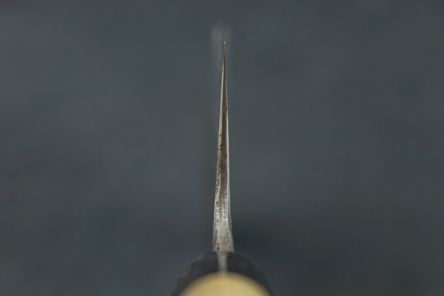 In 2017, after years of training and preparation, Mazaki-san finally opened his own workshop. He now forge-welds all of his carbon steel knives in-house and finishes his bevel with a variety of different whetstones, all by hand. His care and attention to detail are immediately evident when you handle one of his knives: while rustic in appearance, each one has been lovingly polished and perfected. Once you put them to work, his passion and skill come through even more.