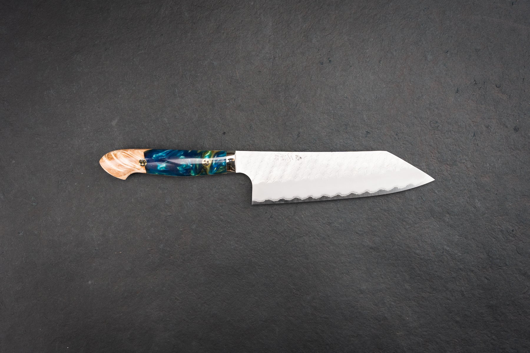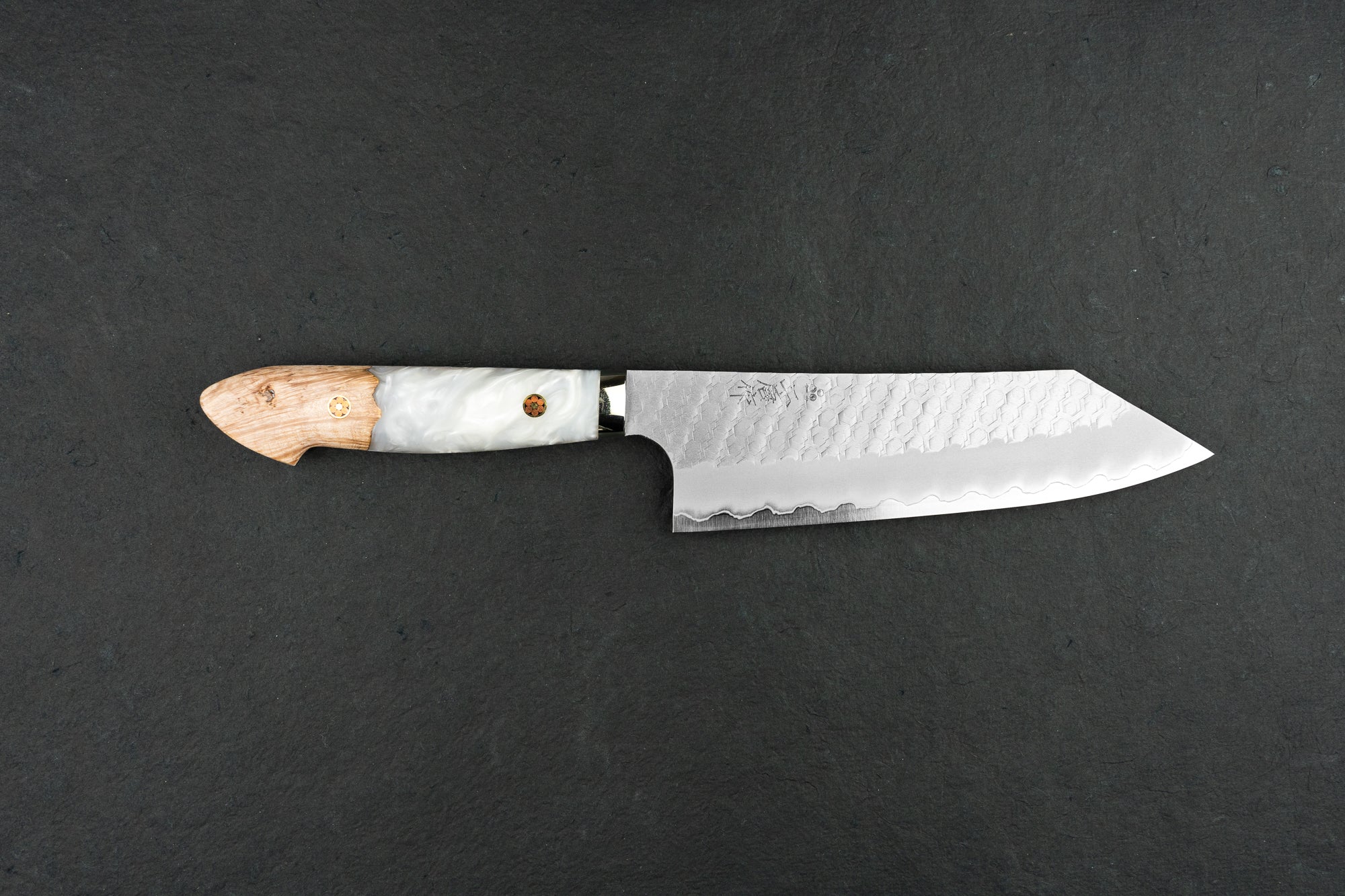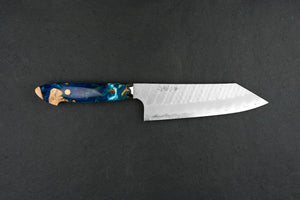 About Nigara Hamono -Nigara-san is a relatively new knifemaker out of Aomori prefecture, but they are not new as a company. The company has been around for over 350 years, tracing back to their swordsmith ancestors. Knifemaking is a small part of what they do; they also produce large steel beams and such for buildings! Go Yoshizawa, age 35, is a young blacksmith who is the company president's son and has decided to go back to their blacksmithing roots. He now makes unique and stunning tsuchime knives and some hand-folded Damascus.