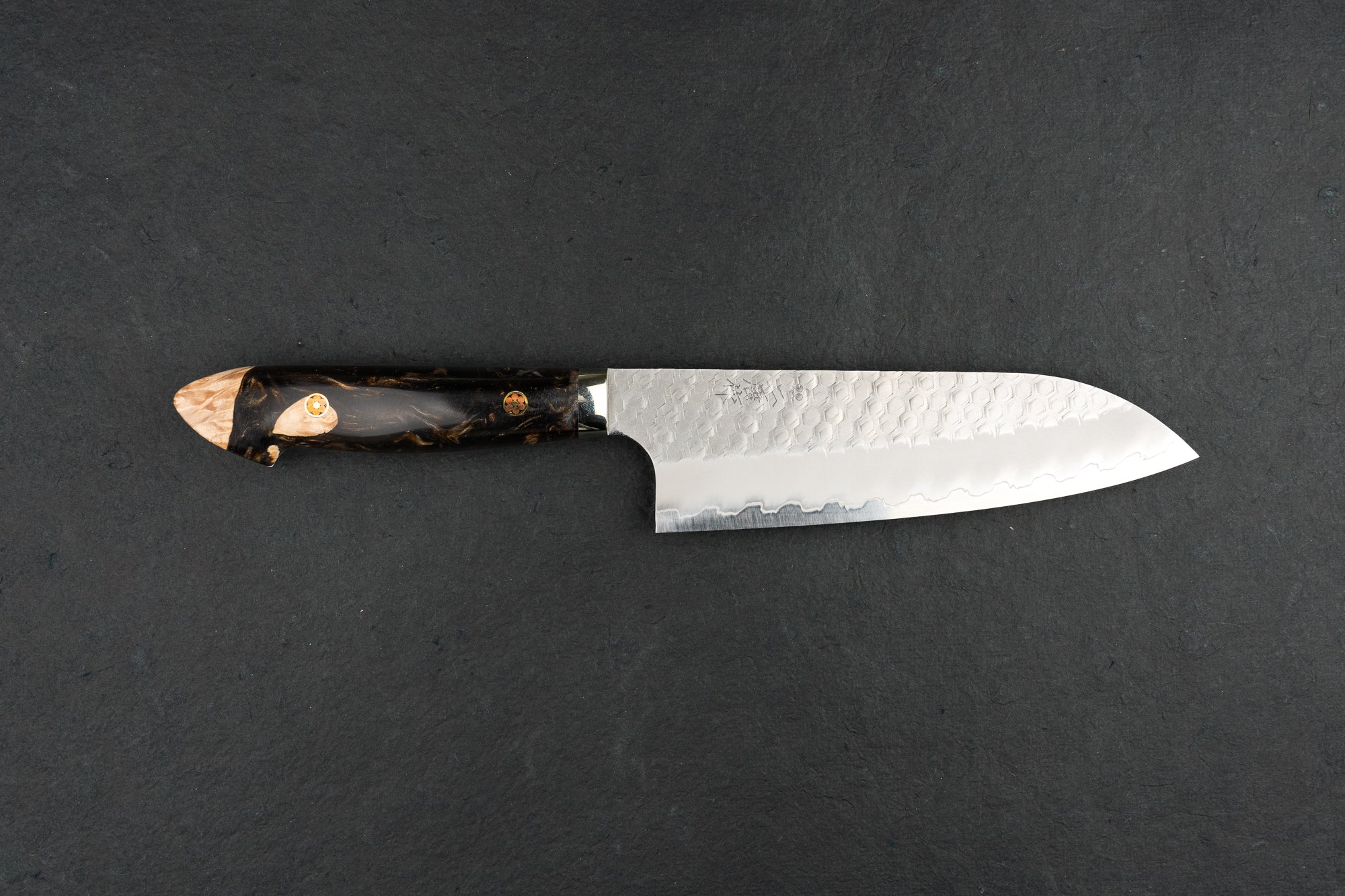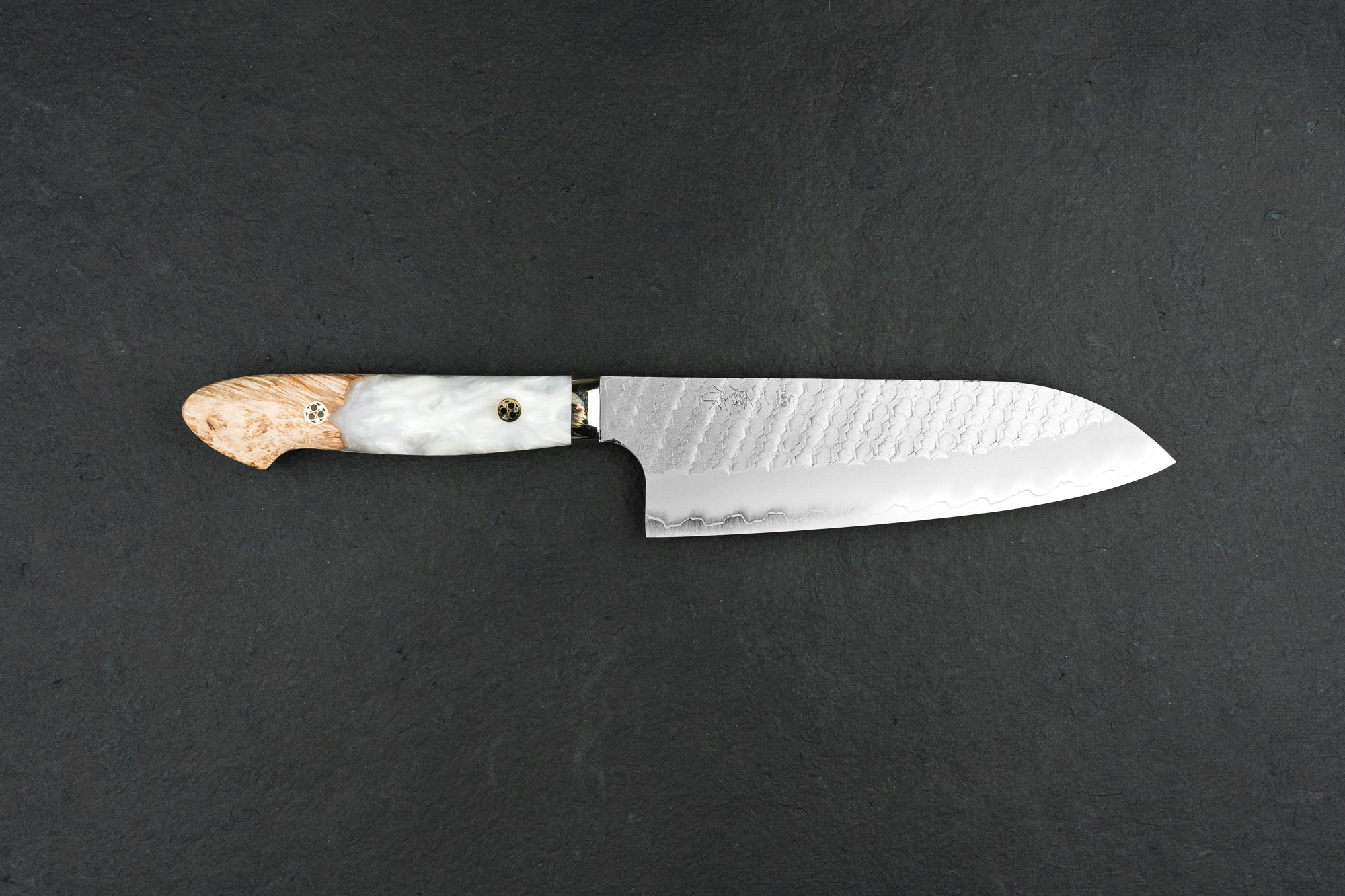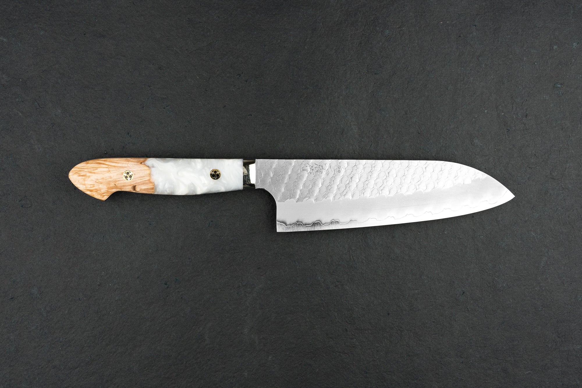 Nigara SG2 Migaki Tsuchime Western Santoku 180mm