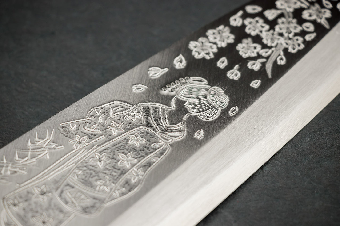 Michiko Kubota-san from Sakai Takayuki is a master engraver with insane self-taught skills. Her knives are as much art as they are functional tools.