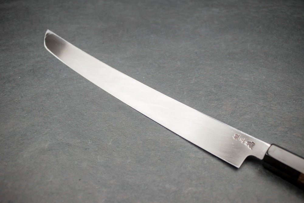 The takobiki is a shape designed for octopus, or "tako" in Japanese. While their original purpose may be for eight-legged creatures, this shape excels at any job a yanagiba could do, from delicate sashimi slicing to ultra-thin carpaccio and tataki.