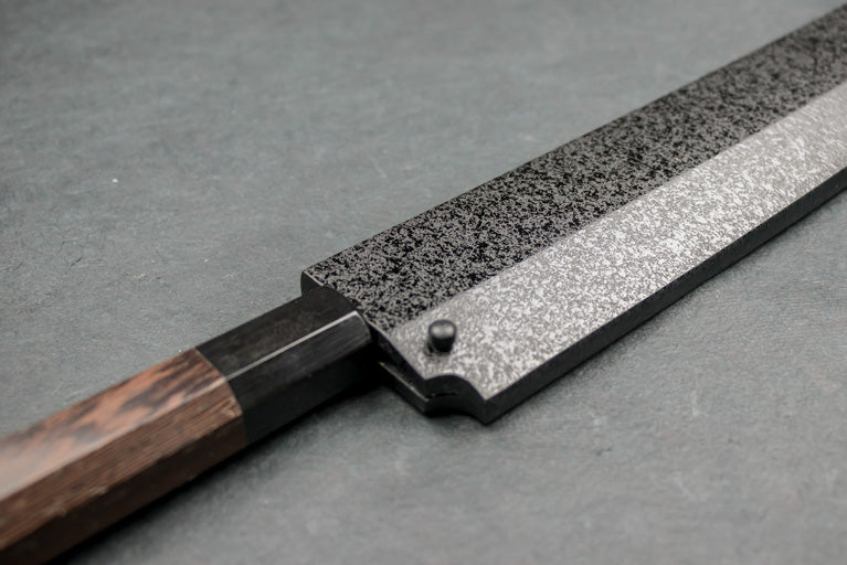 The Zangetsu series is the pinnacle of high-performance sushi knives. Ginsan stainless steel is easy to maintain while possessing many of the desirable qualities of carbon steel, like extreme sharpness. From the wenge and water buffalo horn handle to handmade saya, every detail has been carefully considered.