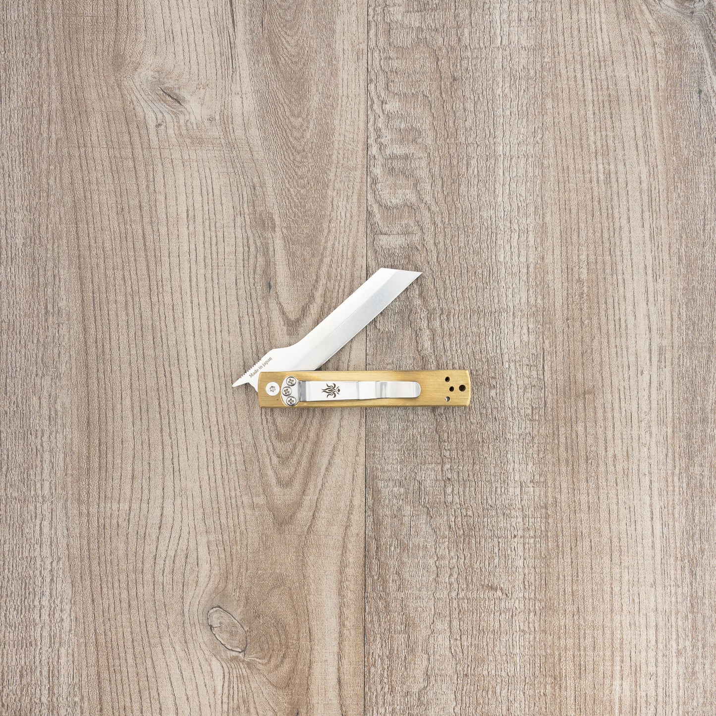 This is the ultimate folding knife inspired by famous higonokami; every detail has been carefully considered and improved up. It can be easily opened and closed one-handed, and the rock-solid liner lock keeps the blade perfectly fixed while you cut with it. The pocket clip can be repositioned to your liking, while the brass scales will age and patina, changing over time. This is the knife to last you a lifetime.