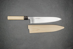 About the Shape - Inspired by the profile of a traditional European chef knife, Gyutos are a multi-purpose knife with a slight meat cutting bias. “Gyuto” translates to “cow sword.” If you want one knife to do it all, This is it. Starting at 180mm, Gyutos can reach the ridiculously long (and awesome) 370mm. For the at-home or professional cook, we recommend a Gyuto which measures between 210mm and 270mm long.