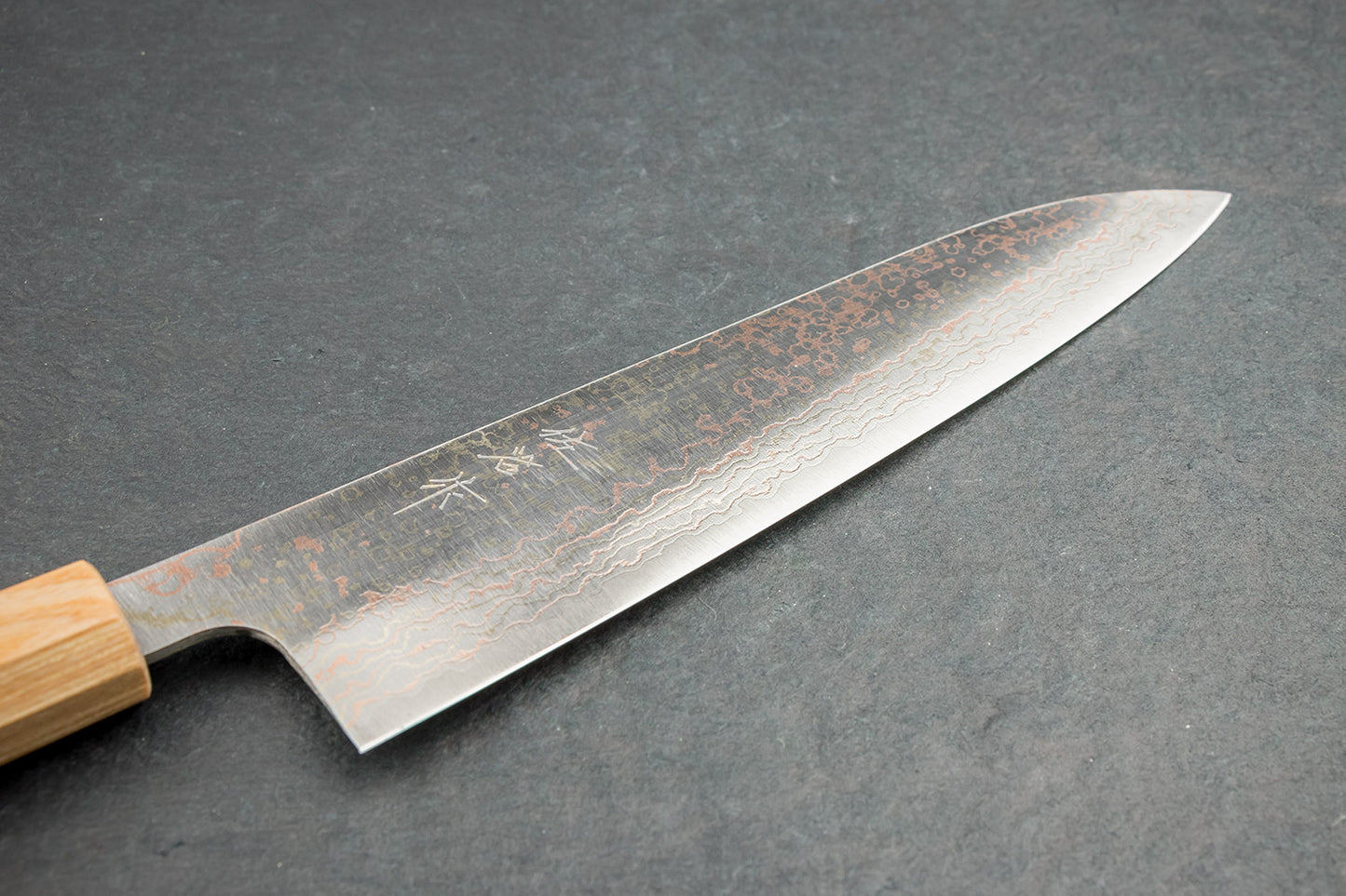 About the shape - Inspired by the profile of a traditional European chef knife, gyutos are a multi purpose knife with a slight meat cutting bias and “gyuto” even translates to “cow sword”. If you want one knife to do it all, This is it. The longer blade typically gives the blade a forward balance that allows it to work for you. While the blade would ideally by slid forward or back while cutting, they are also great for folks that prefer to 'rock' their knife while cutting.