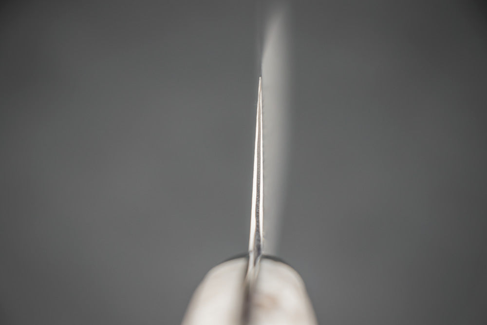 Normally, it takes apprentices some 10 – 15 years to become pros, but Kato-san did it in just 5 years, and is now running the show. He forges most of the Masakage Kiri, Yuki, and Koishi knives that were once his father-in-law's domain. Kato-san also brings a very special level of professionalism and care to his customers’ orders, ensuring that each and every finished blade fully meets his exacting quality standards.