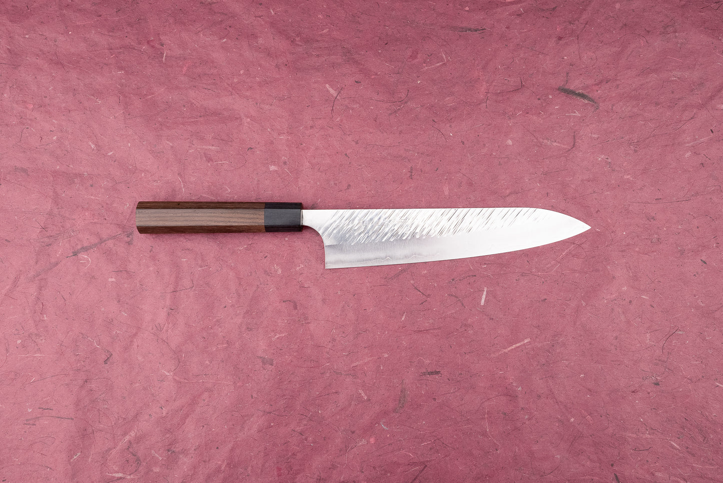 About the Shape - Inspired by the profile of a traditional European chef knife, Gyutos are a multi-purpose knife with a slight meat cutting bias. 'Gyuto' translates to 'cow sword.' If you want one knife to do it all, This is it. Starting at 180mm, Gyutos can reach the ridiculously long (and awesome) 370mm. For the at-home or professional cook, we recommend a Gyuto, which measures between 210mm and 270mm long.
