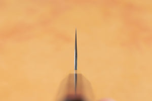 The SG2 stainless steel used in the blade is wickedly sharp stuff, capable of holding its edge better than most other knife steels. Kurosaki-san has made the edge just thin enough to cut like a laser while keeping it thick enough to be relatively durable.
