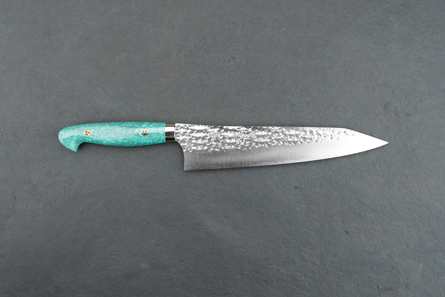 Yu Kurosaki began his blacksmithing career in 2002 at Kanehiro Uchi Hamono, where he apprenticed with Hiroshi Kato. Kato-san taught him well, and Kurosaki-san is now recognized as a master himself. He told me he wasn’t a natural at first and struggled for a long time, but his first sale inspired him to keep at it. We’re all glad he did. Kurosaki-san has since become best known for his wildly creative blades and finishes that are as much art as they are high-performance kitchen tools.