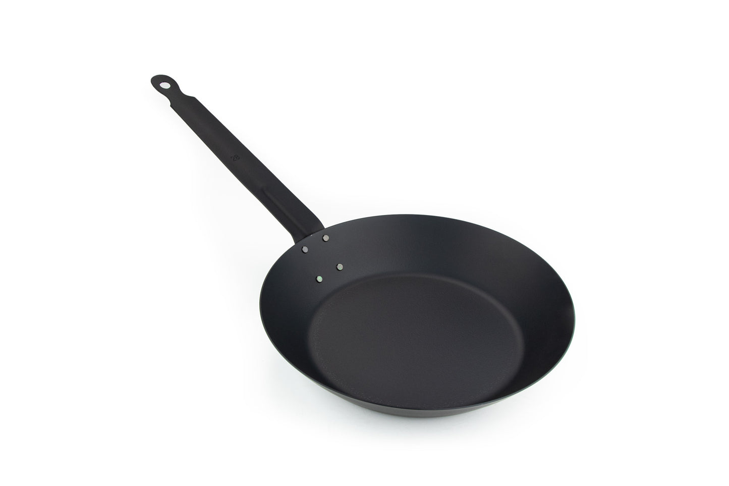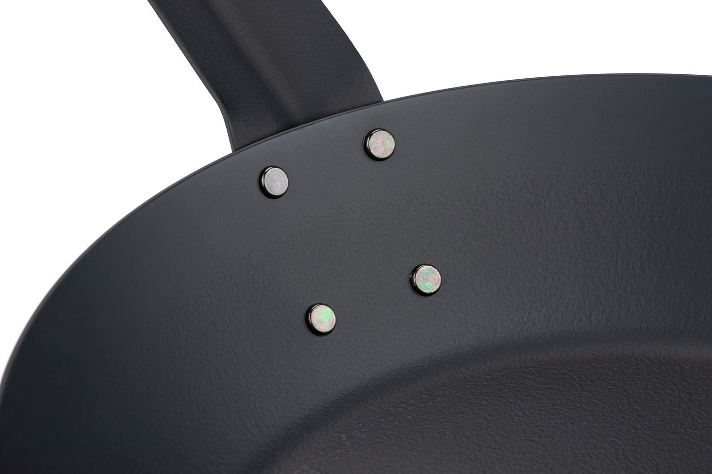 Out of the box, these pans are also coated with a food-safe silicon layer to help promote a non-stick surface until your seasoning is built up with several uses. As with any frying pan, we don't recommend using steel wool to clean it, but instead a tawashi brush that won't damage the seasoning.