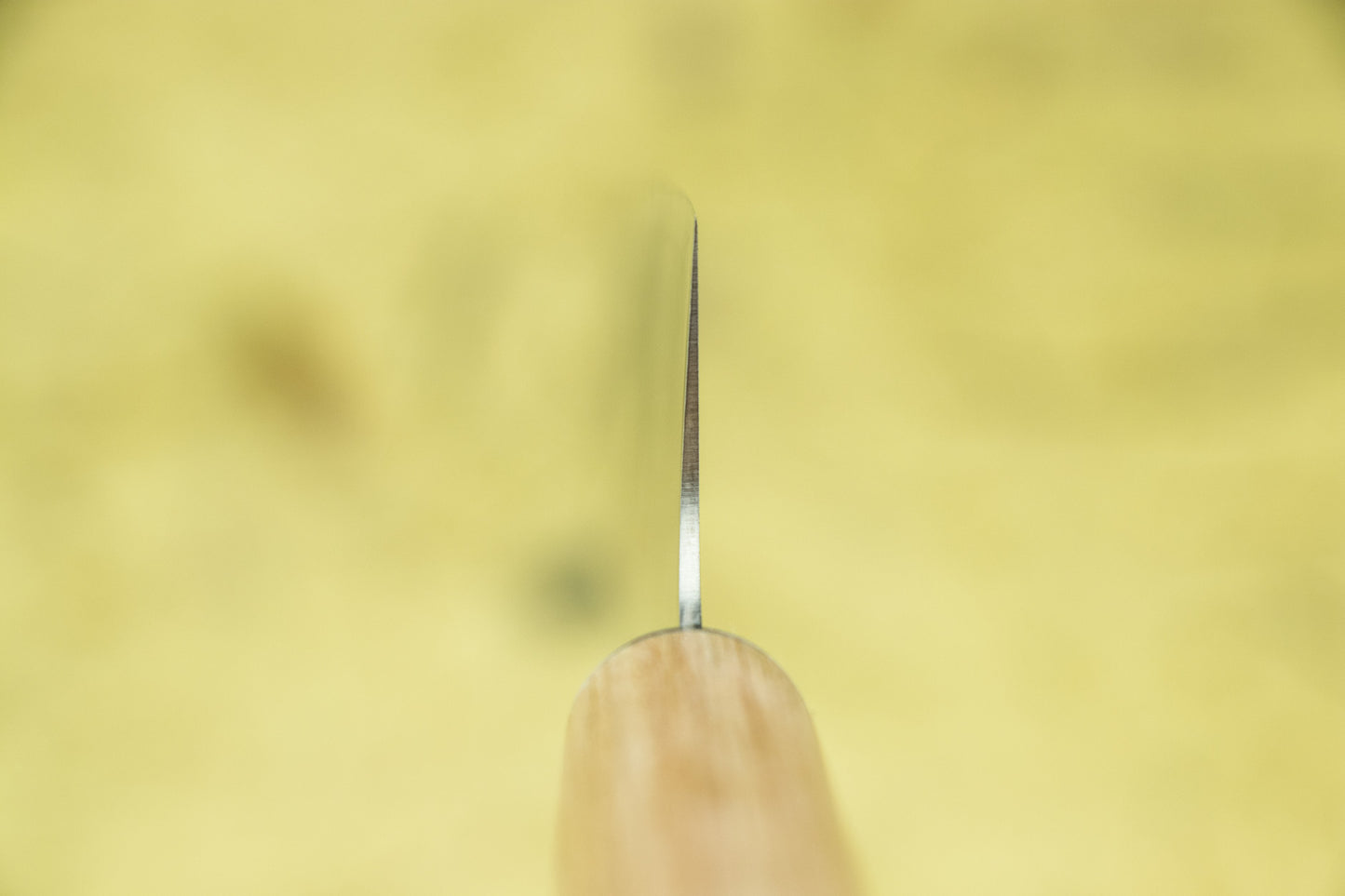 About the Shape - This is also a multi-purpose knife, but with a slight vegetable bias. Santoku means 'Three Virtues' or 'To solve Three Problems'. The virtues or problems are slicing, dicing and mincing. Santoku is usually found in 160mm - 190mm lengths. These are more and more popular in Western kitchens due to their unique shape and smaller easy to handle size.