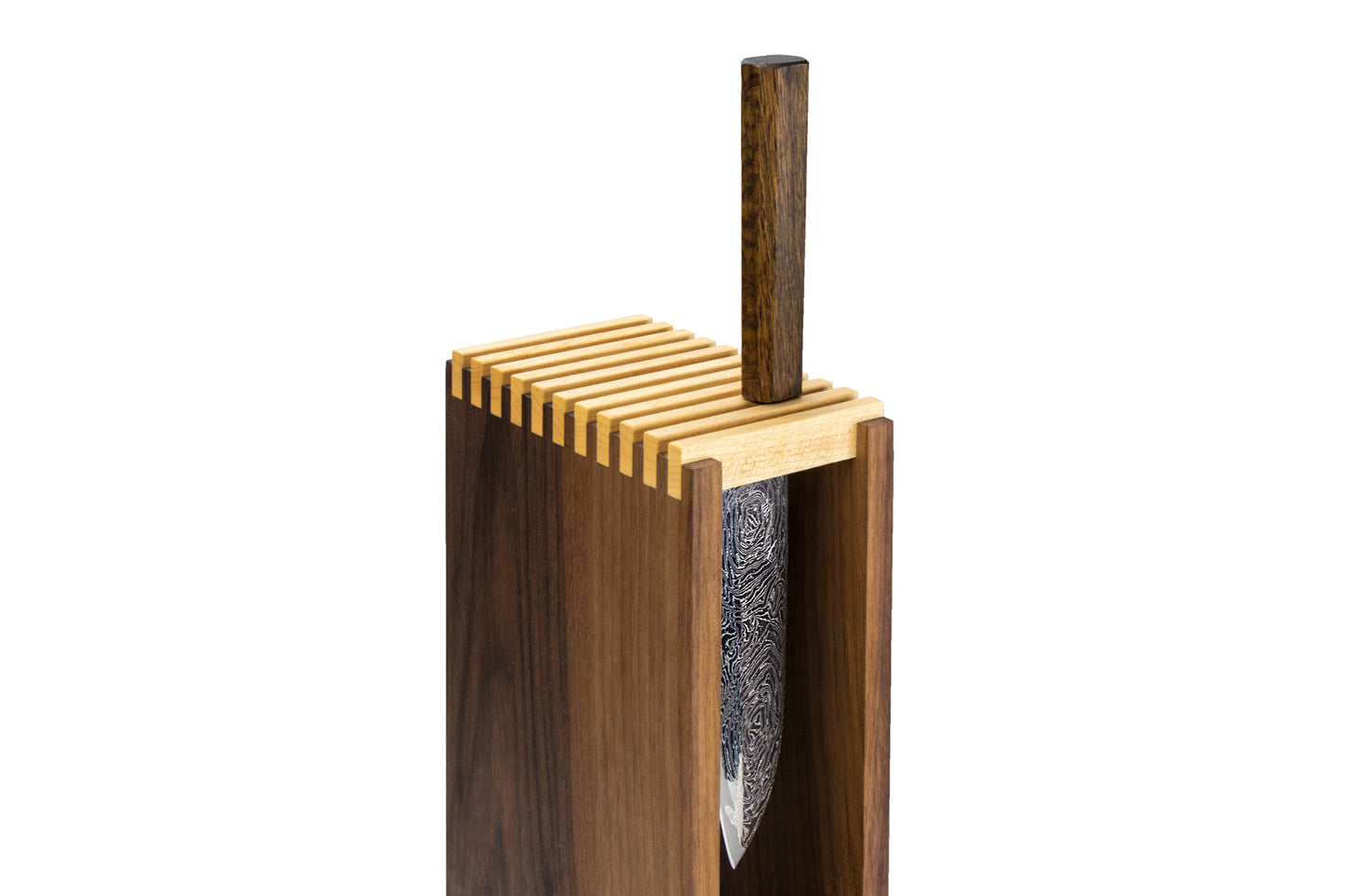 This display block allows you to enjoy the artistry of your handmade knives and the gorgeous walnut wood grain.