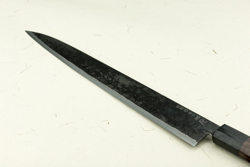 About the Shape: “Sujihiki” translates to “Flesh Slicer” and it does exactly what the name suggests, perfect for carving and slicing roasts, turkey, raw meats, fish, and all other proteins and the extended blade length allows you to slice with one long stroke, instead of sliding the knife back and forth in a sawing motion. Making clean slices of brisket or ultra-thin applications like Carpaccio a breeze to execute.