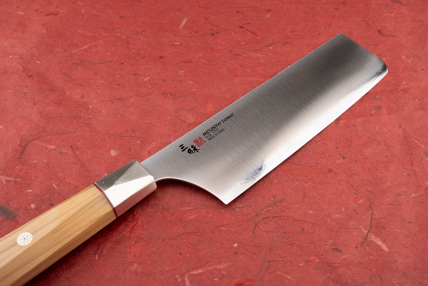 About the Shape - A Nakiri is a vegetable knife. Under utilized in the Western kitchen, the Nakiri’s flat blade is meant for the push/pull chopping of vegetables. Since the entire flat edge of the knife kisses the cutting board at once, you wont be turning the vegetable into an accordion. Accordion vegetables are still connected like a paper doll after you're “done” cutting them.