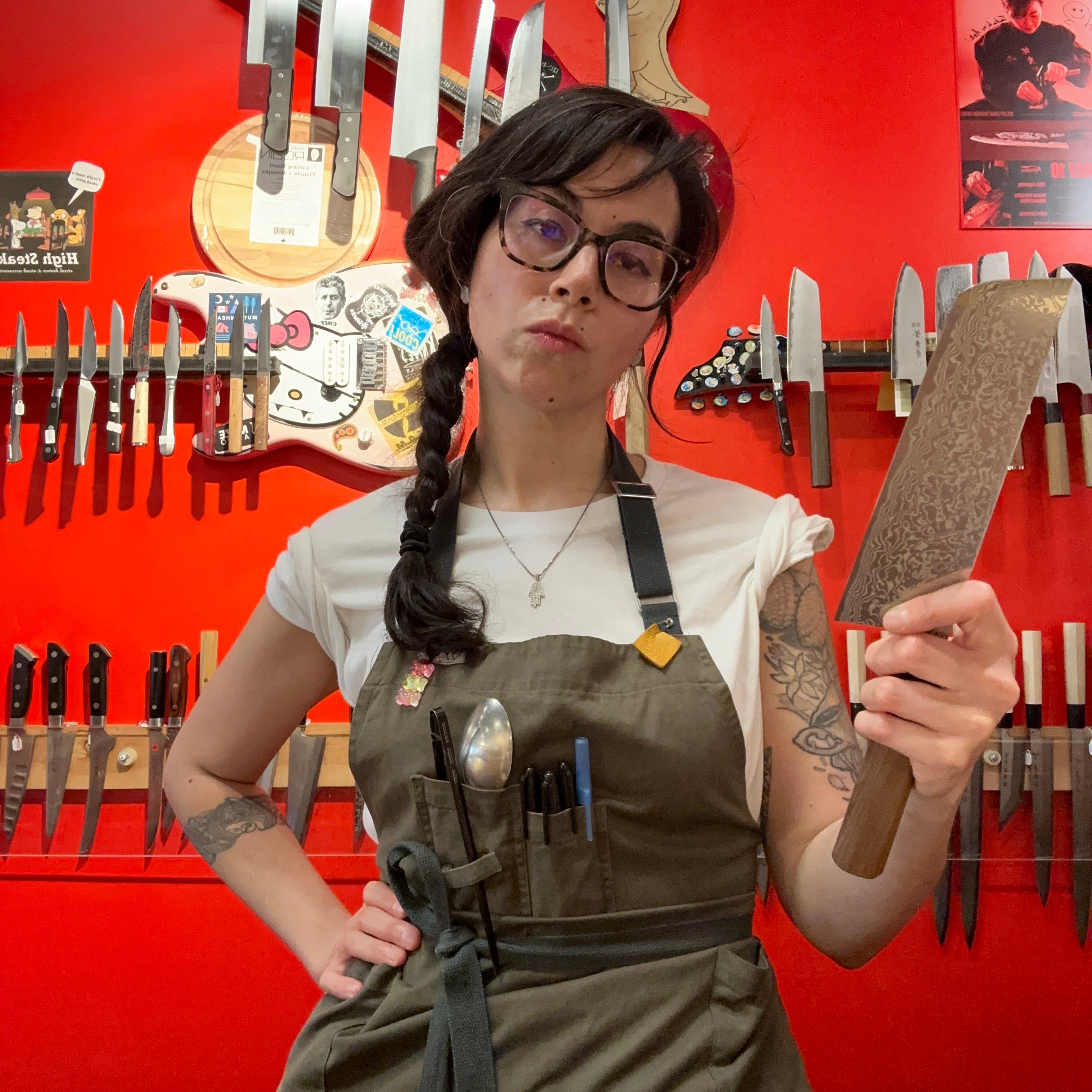 After nine years of building stages and setting up lighting for live events and concerts, Maddie finally decided to hang up her steel toes and find something more stable. Knifewear sounded like the perfect fit for someone raised by foodies. Years of building came in handy for helping to make the Toronto store come together from the ground up. Having been a customer of Knifewear for a long time she was excited to have the chance to help others to find the knives she’s been enjoying for so long. An artist, dead head, Trekkie and foodie - you can always find Maddie diving head first into a new project or adventure.