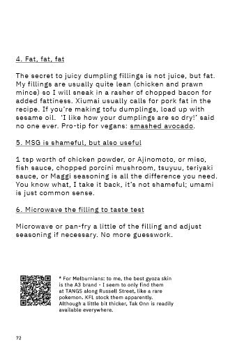 If I wrote a cookbook, I would think it would look just like this. Simple recipes cooked at home for loved ones, random tidbits of hard-hitting cooking advice, even the odd QR code linking to a video of someone else explaining the thing better than the author can.