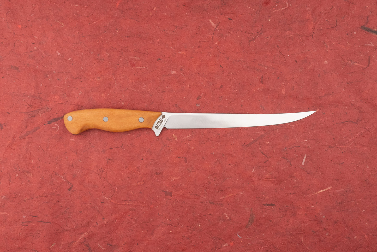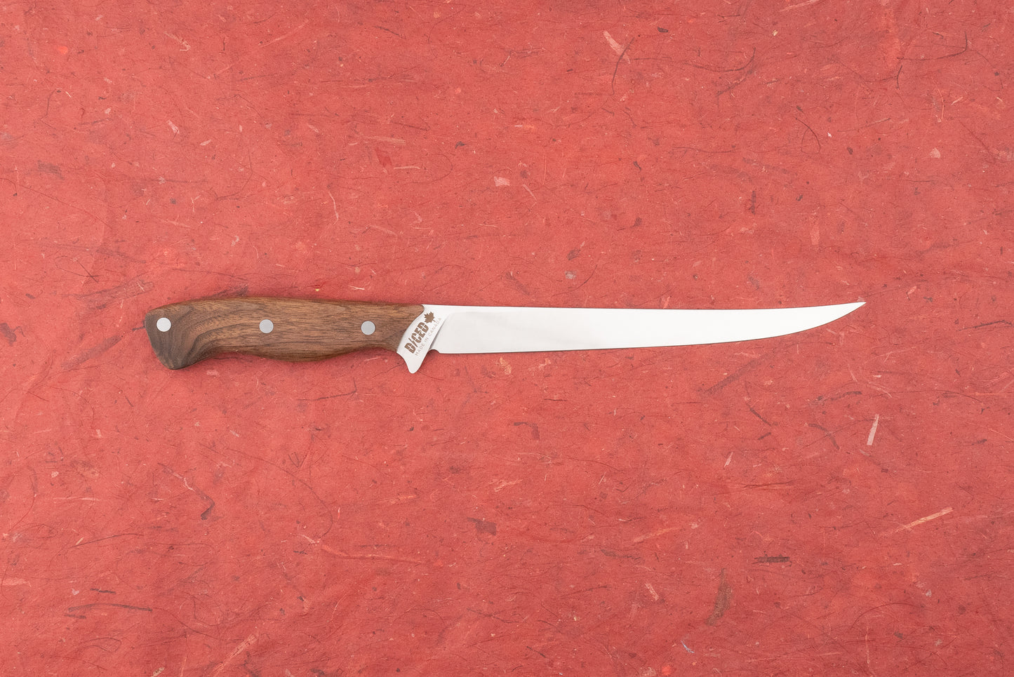 About the Shape - A semi-flexible fillet knife made to precisely cut the meat away from bones and skin fillets with ease. For those that prefer a stiffer knife with a little give, this blade is excellent for tunnel boning, filleting fish, and butchering big game.