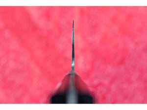 Fujiwara is one of the most revered names in the world of Japanese knives. The Fujiwara family started as blacksmiths in 1870, first forging farm tools, then swords. Many blacksmiths these days make a blade with a carbon steel core laminated with an outer layer of stainless steel for a high-performance knife with lower maintenance; this guy was one of the first to develop this technique. In addition to laminating his own steel, he pushes his steel to its absolute limit of hardness. This creates a blade that requires respect and care but stays sharp for a ridiculously long time.