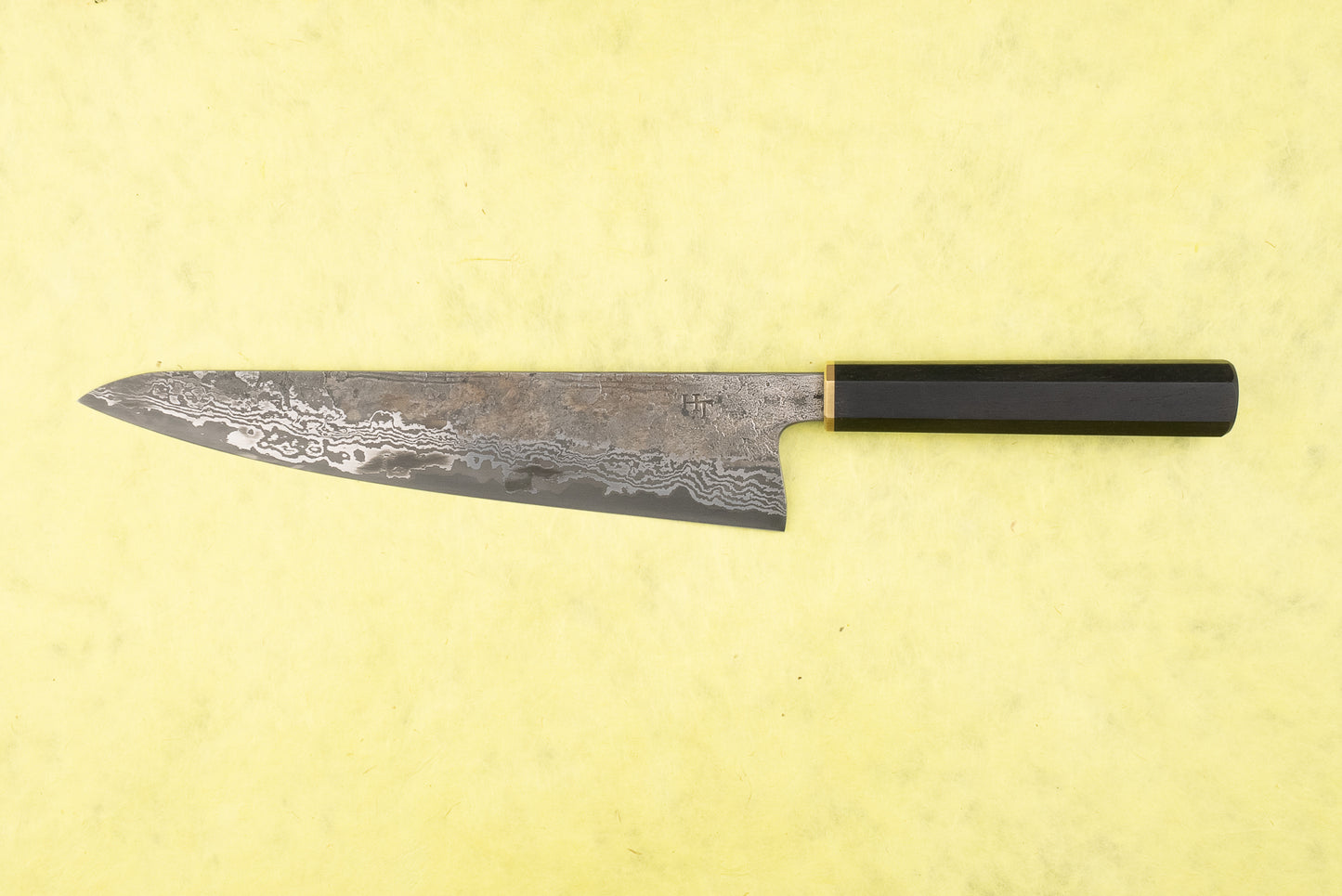 About the Shape - Inspired by the profile of a traditional European chef knife, Gyutos are a multi-purpose knife with a slight meat cutting bias. “Gyuto” translates to “cow sword.” If you want one knife to do it all, This is it. Starting at 180mm, Gyutos can reach the ridiculously long (and awesome) 370mm. For the at-home or professional cook, we recommend a Gyuto, which measures between 210mm and 270mm long.