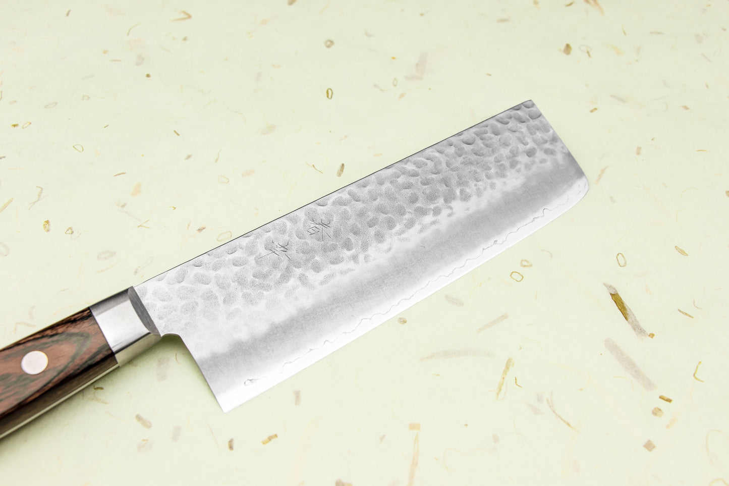 About the Shape - A Nakiri is a vegetable knife. Under utilized in the Western kitchen, the Nakiri’s flat blade is meant for the push/pull chopping of vegetables. Since the entire flat edge of the knife kisses the cutting board at once, you wont be turning the vegetable into an accordion. Accordion vegetables are still connected like a paper doll after you're ā€œdoneā€ cutting them. To truly understand the awesomeness of a Nakiri we recommend making onion soup your first night with the knife. The ease of chopping will blow you away.