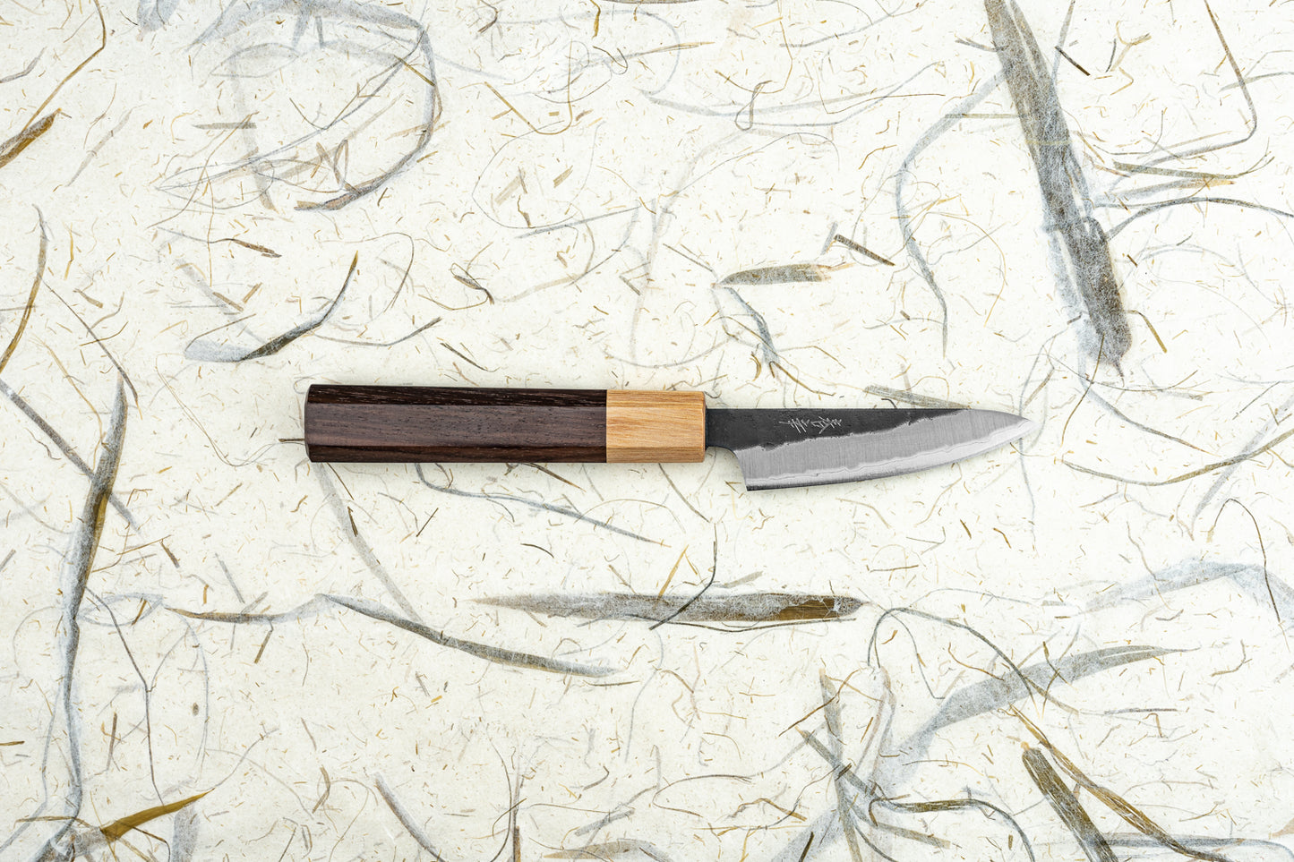 Aogami Super is the king of knife steel—super easy to sharpen, gets a laser beam edge, cuts like silk, and isn’t as fussy as other carbon steels. It’s then clad in stainless steel, so only the edge needs to be kept dry to avoid rusting. Brilliant. If that wasn’t enough, they’ve given it this black ā€˜kurouchi’ finish, which makes for a seriously badass blade. The two-tone handle compliments the overall look of the blade so well and really makes this a knife worth showing off!