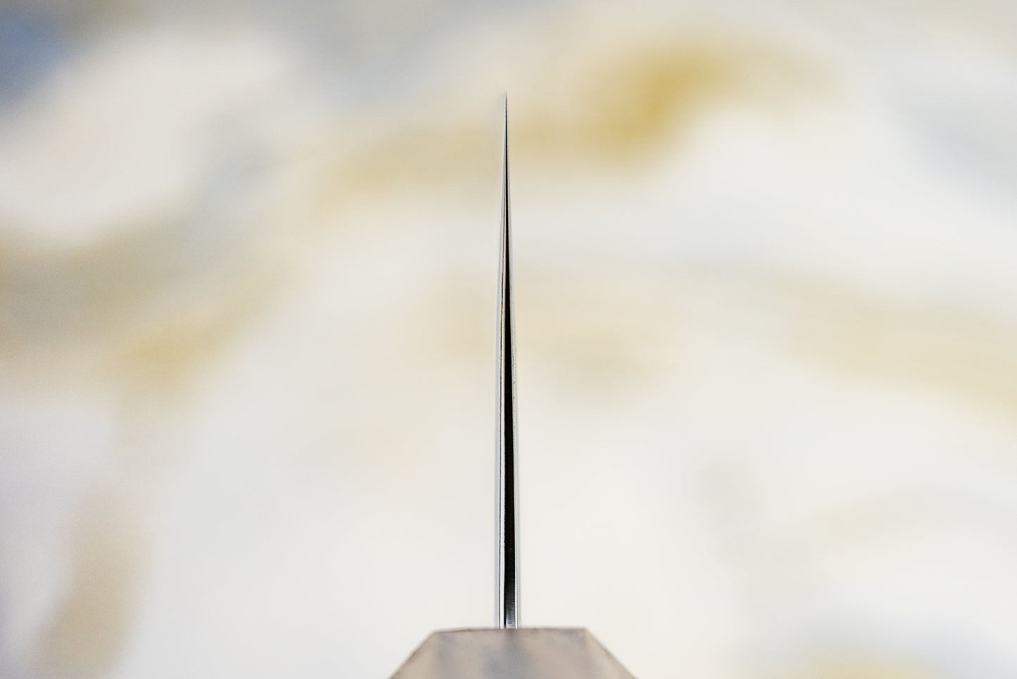 The Haruyuki Zanpa is forged from a fantastic stainless steel called AUS-10, which was specially designed with knife-makers in mind. It gets sharp like a razor but isnāt as delicate or fussy as some of the harder Japanese steels. High performance, low maintenance; perfect for both chefs and home cooks.
