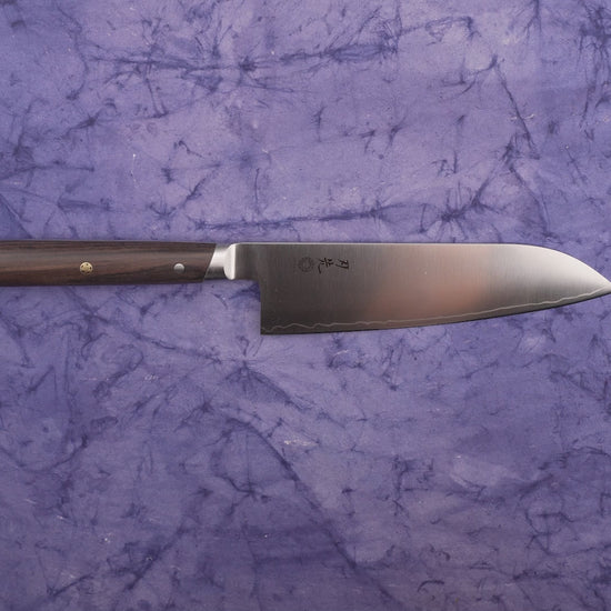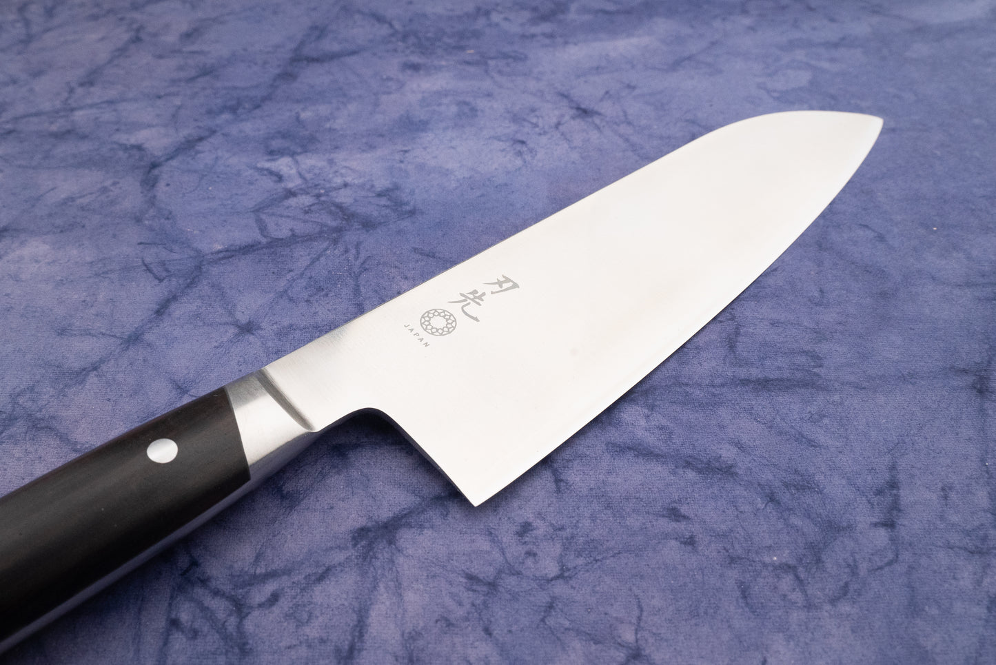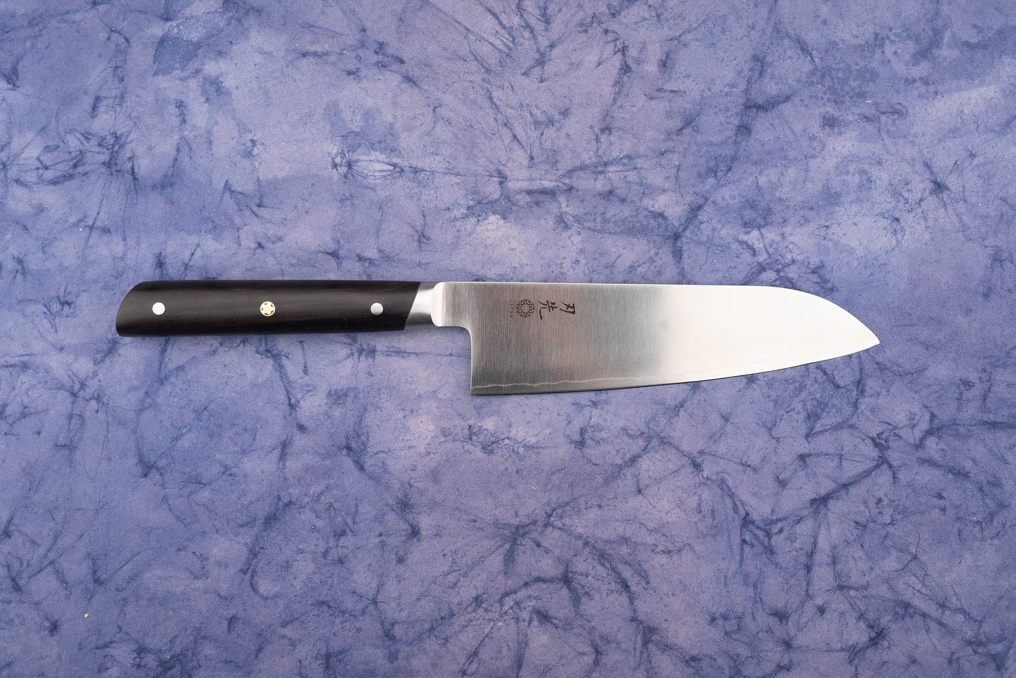 About the Shape - This is also a multi purpose knife, but with a slight vegetable bias. Santoku means 'Three Virtues' or 'To solve Three Problems'. The virtues or problems are slicing, dicing and mincing. Santoku is usually found in 160mm - 190mm lengths. These are more and more popular in Western kitchens due to the unique shape and smaller easy to handle size.