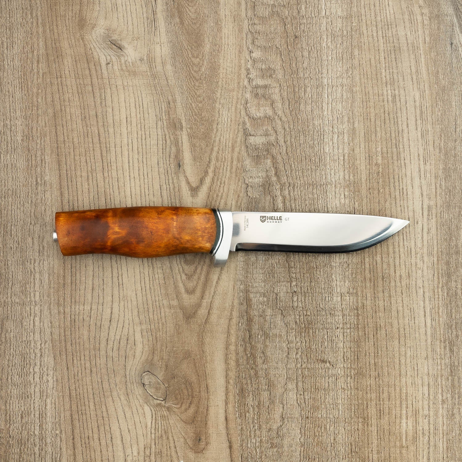 The Helle GT is the perfect choice for those who like a fairly big knife with a guard. Despite its size, the knife remains light thanks to an aluminum guard and slim tang. Unlike many Helle knives, the GT snaps into its sheath, making it extra secure.