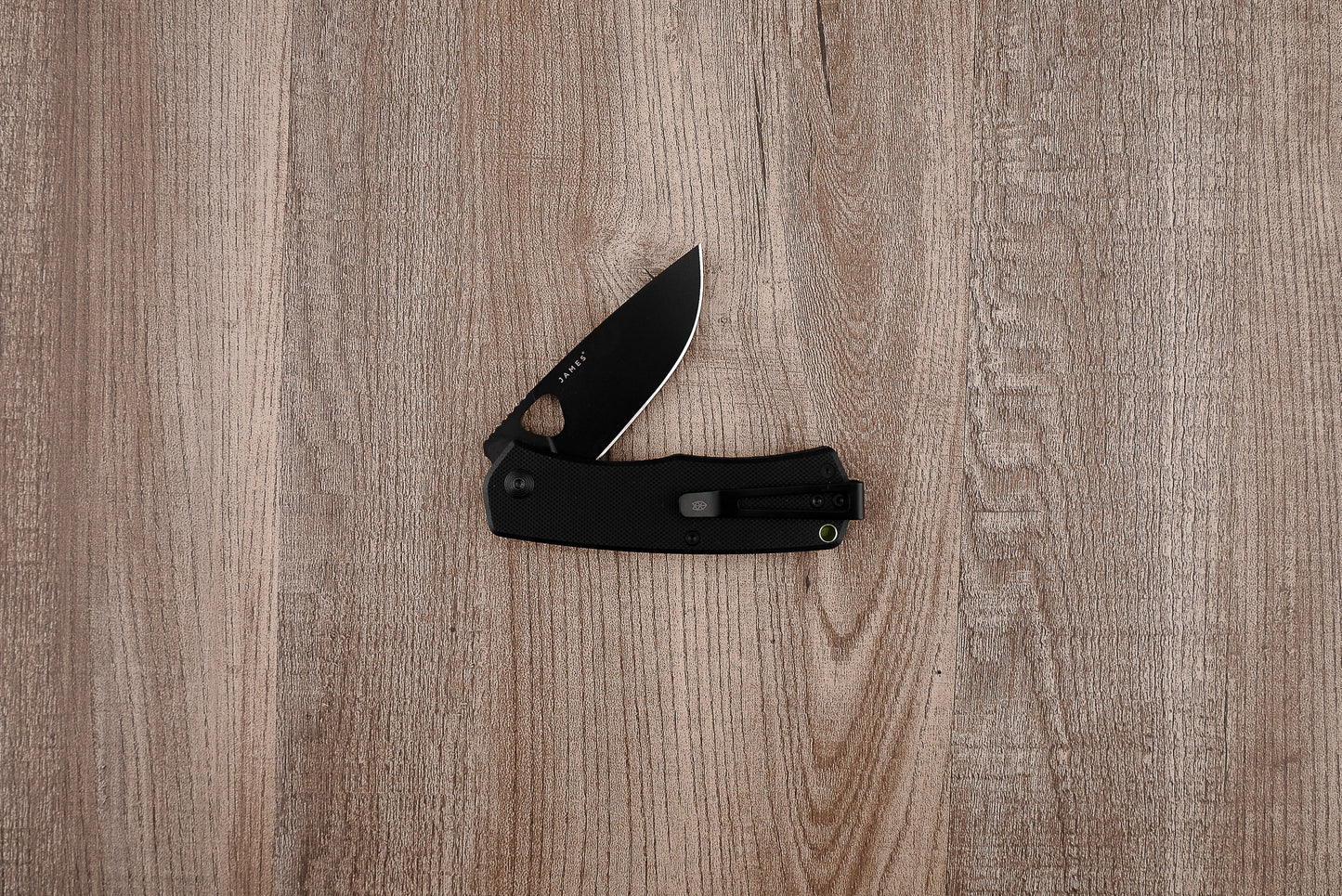 This grippy, utilitarian blade is James Brand's take on the classic liner lock, one-handed open design originated by Spyderco. The blade can be opened either left or right-handed, with a handy reversible clip for carry in any pocket.