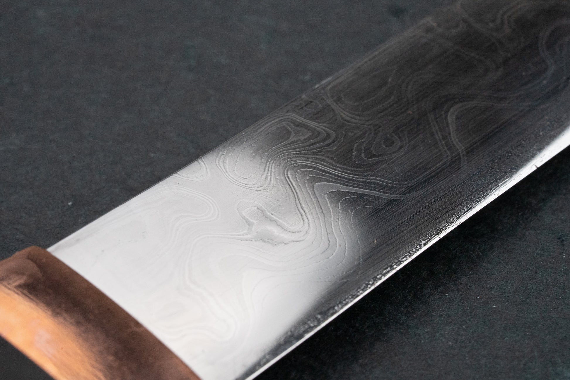 About Ken Kageura: Born in 1942, Ken Kageura is a 25th-generation blacksmith and has been making knives for over 50 years. Hailing from the city of Yusuhara on Shikoku Island, his methods are super cool; old school and modern all at the same time. Kaguera-san puts more effort than most into making his knives. The primary example of this is his penchant for recycled materials. He often uses scrap metal in the form of discarded hand tools, or even a ship’s hull to clad his high-quality carbon steel creations. The result is something unlike any other blacksmith’s work we know of.