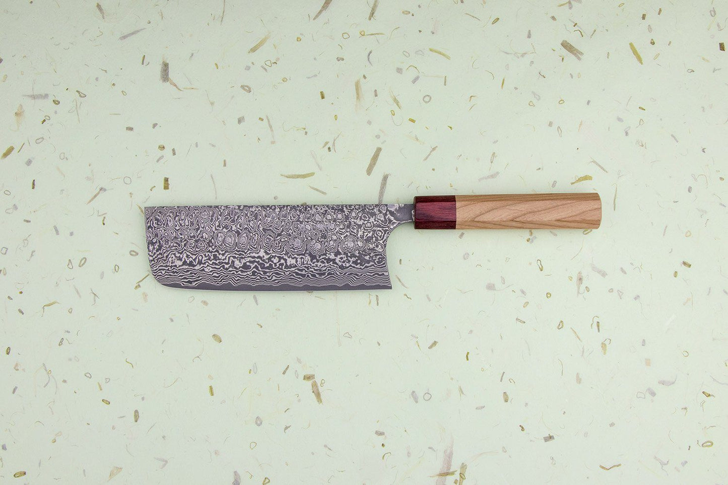 Takumi Ikeda-san loves making stunning damascus blades, and the Kumo is no exception. The name means ‘cloud’ in Japanese, inspired by the cloud-like patterns in the steel. Sandwiched between those gorgeous steel layers is a core of crazy-sharp VG10 stainless steel, an incredible material made to perform like ancient carbon steel but with minimal maintenance. The result is a blade that cuts like a dream while being super easy to care for.