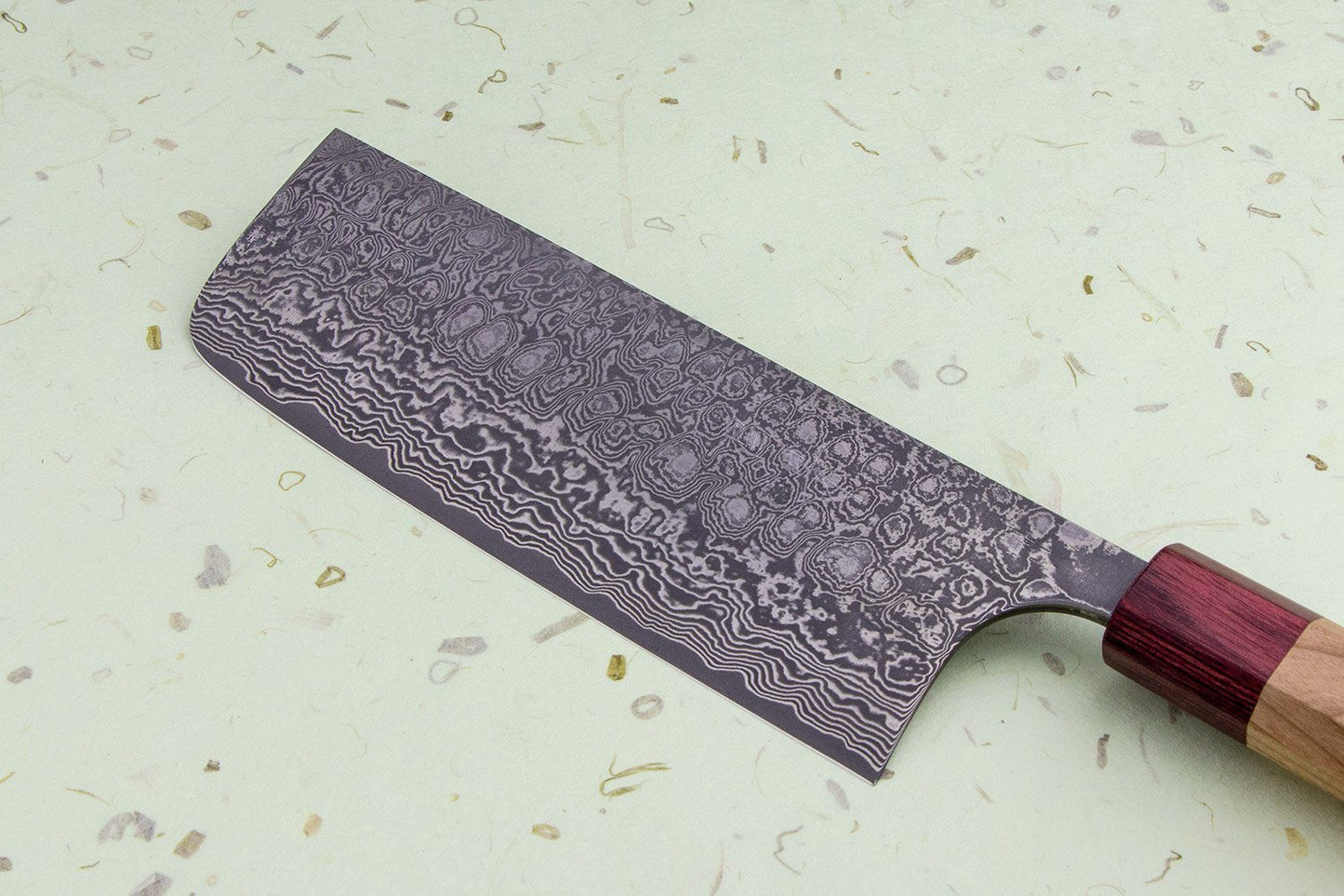 About the Shape - A Nakiri is a vegetable knife. Under utilized in the Western kitchen, the Nakiri’s flat blade is meant for the push/pull chopping of vegetables. Since the entire flat edge of the knife kisses the cutting board at once, you wont be turning the vegetable into an accordion. Accordion vegetables are still connected like a paper doll after you're “done” cutting them. To truly understand the awesomeness of a Nakiri we recommend making onion soup your first night with the knife. The ease of chopping will blow you away.