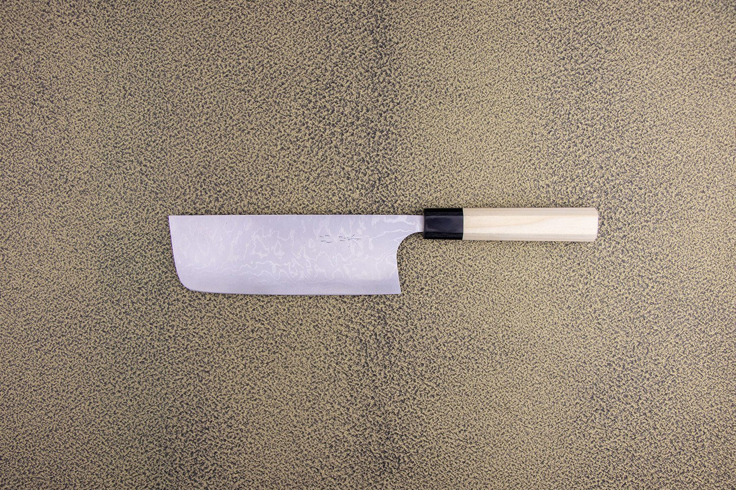 About the Shape - A Nakiri is a vegetable knife. Under utilized in the Western kitchen, the Nakiri’s flat blade is meant for the push/pull chopping of vegetables. Since the entire flat edge of the knife kisses the cutting board at once, you wont be turning the vegetable into an accordion. Accordion vegetables are still connected like a paper doll after you're “done” cutting them. To truly understand the awesomeness of a Nakiri we recommend making onion soup your first night with the knife. The ease of chopping will blow you away.