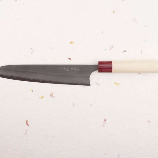 About Masakage Yuki - When you pick up the Yuki, you’ll notice just how light it is. The steel is hammered thinner than your average knife, which lets it fly through dense veggies with ease. Shirogami, or ‘white carbon’ in English, is a very traditional steel prized by blacksmiths and knife nerds alike for its great edge retention and legendary sharpness. Yuki knives are clad in softer stainless steel, so only the very edge has to be kept dry to prevent rust. This line is one of our most popular and a frequent gateway into the world of hand-hammered knives.