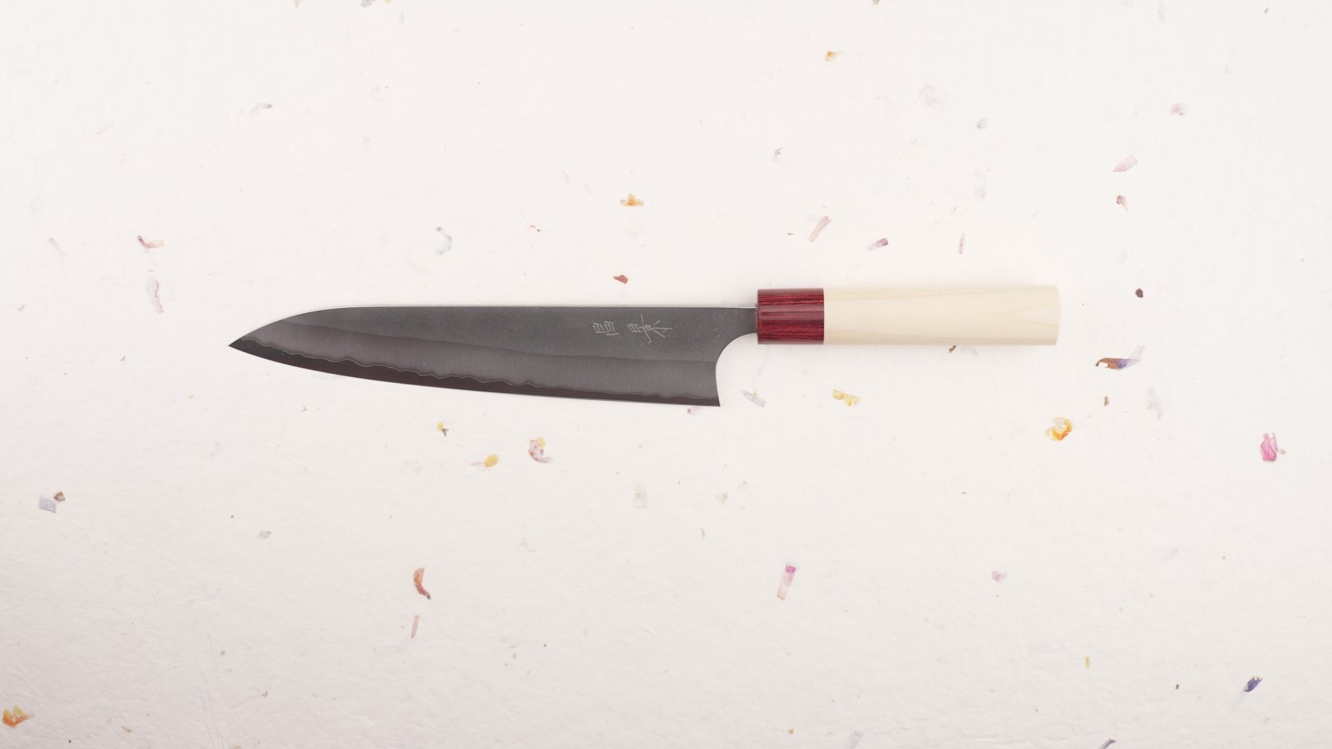 About the Shape - Inspired by the profile of a traditional European chef knife, Gyutos are a multi purpose knife with a slight meat cutting bias. “Gyuto” translates to “cow sword.” If you want one knife to do it all, This is it. Starting at 180mm, Gyutos can reach the ridiculously long (and awesome) 370mm. For the at-home or professional cook, we recommend a Gyuto which measures between 210mm and 270mm long.