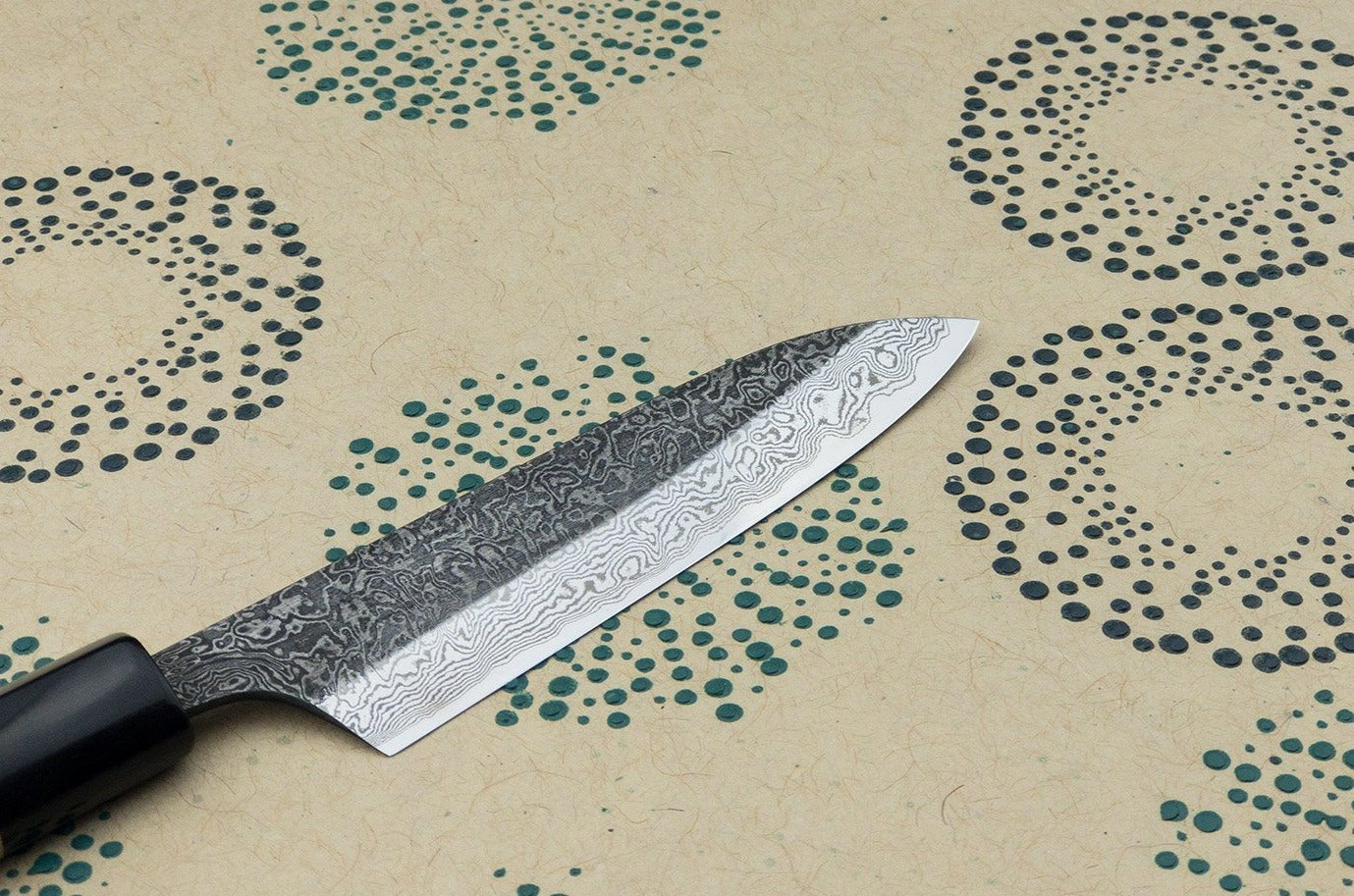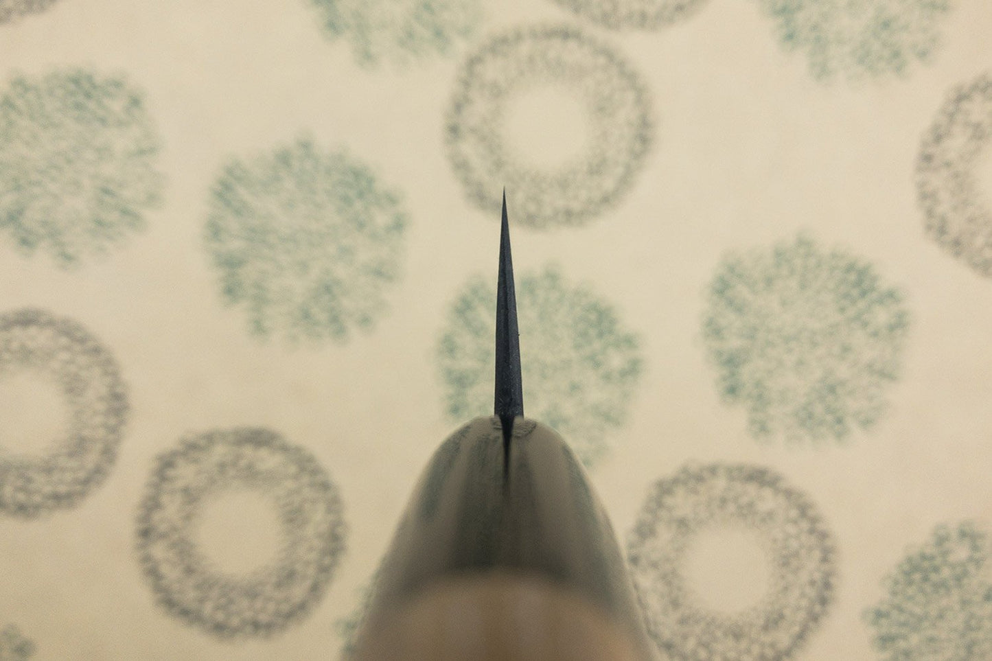 This blade's core is made from hard SLD steel clad in softer stainless steel, and, thanks to his insane skill and blacksmithing genius, Masashi-san has pushed it to the absolute limit of hardness. Basically, this means his knives stay sharp way longer than this steel typically would but aren’t as fragile as most steel in this category. The best of both worlds!