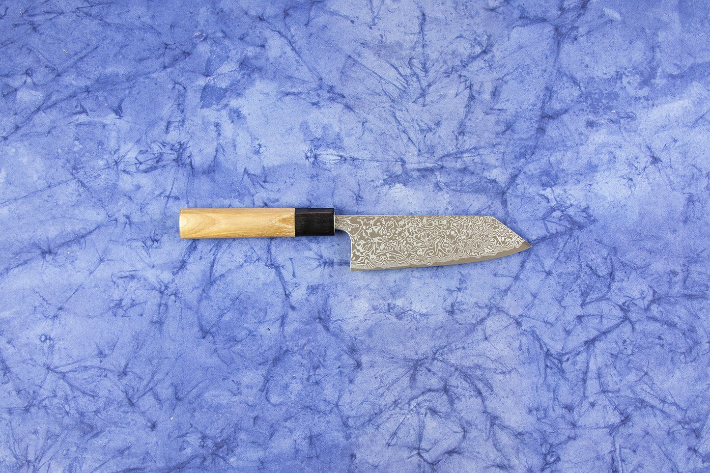 Masashi-san made this knife from a phenomenal steel called SLD, which he can push to the absolute limits of hardness due entirely to his knifemaking genius and a few top-secret techniques. He sharpens this knife with his unique trademark edge, making the back end a little tougher for chopping and the tip finer for delicate work.