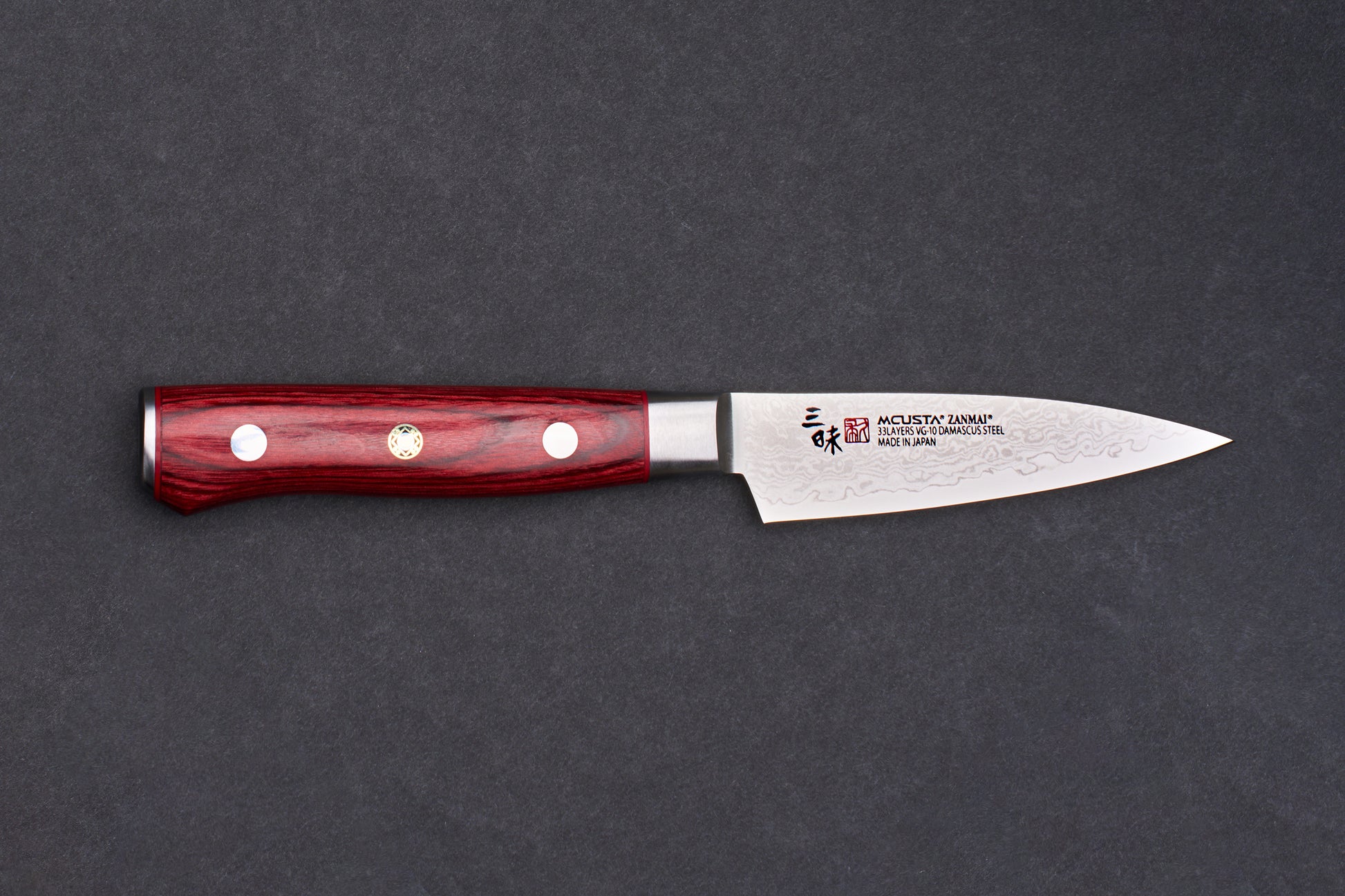 Mcusta Zanmai Classic Pro Damascus Flame Petty 90mm with Handpainted Saya Set