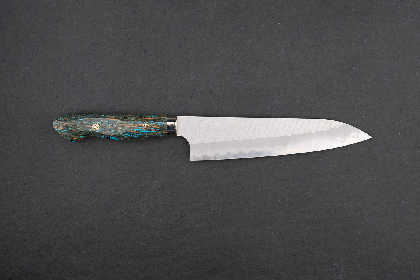 About Nigara Hamono -Nigara-san is a relatively new knifemaker out of Aomori prefecture, but they are not new as a company. The company has been around for over 350 years, tracing back to their swordsmith ancestors. Knifemaking is a small part of what they do; they also produce large steel beams and such for buildings! Go Yoshizawa, age 35, is a young blacksmith who is the company president's son and has decided to go back to their blacksmithing roots. He now makes unique and stunning tsuchime knives and some hand-folded Damascus.