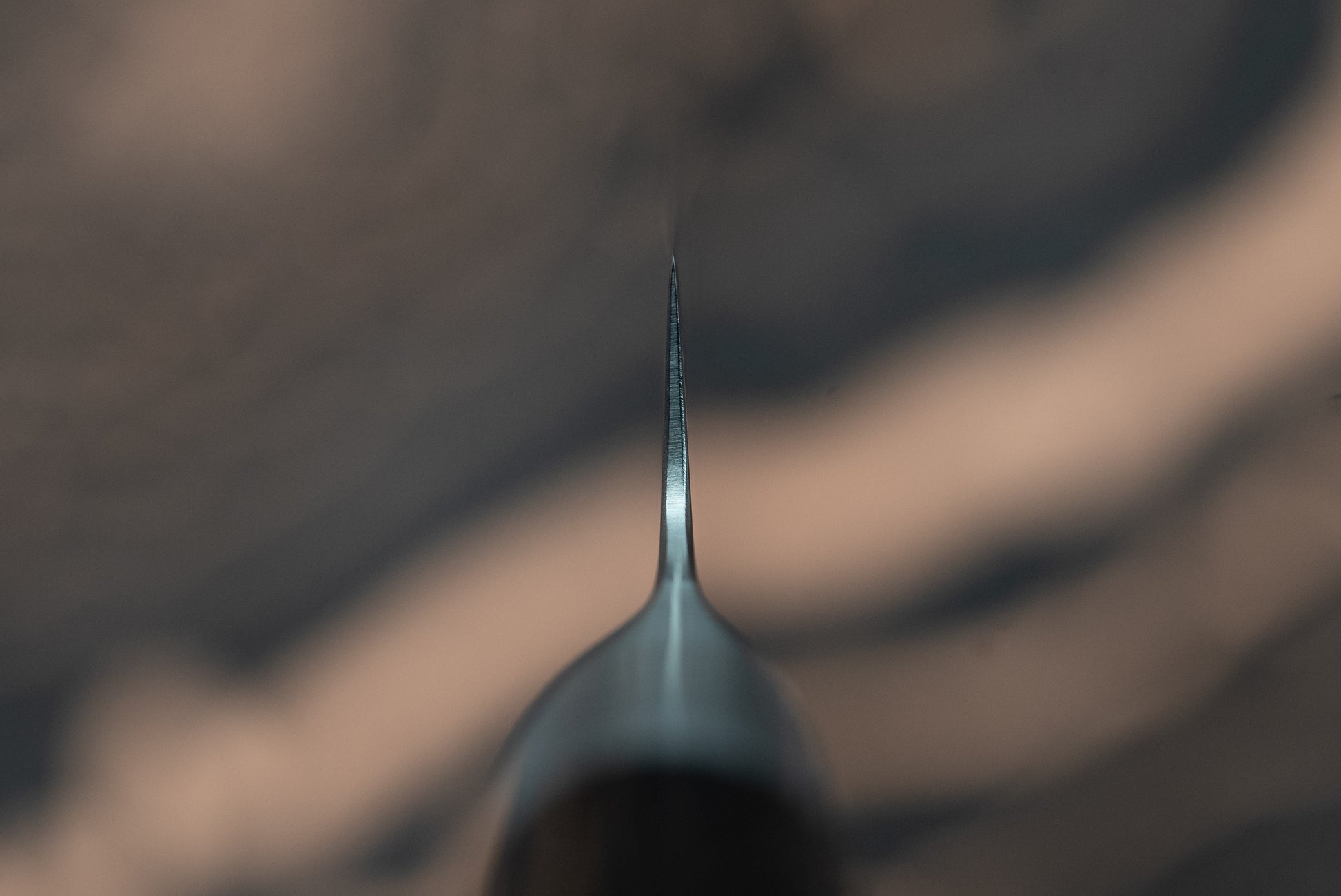 About Sakai Takayuki Grand Chef Seigaiha - The western style Seigaiha line all feature kiritsuke tip, thin blades and an eye catching “Blue Wave damascus”. It is made from Boehler Swedish steel, the same steel they have been using for their other grand chef lines. They can take a super keen edge and are easy to sharpen and hold a pretty good edge for a good amount of time. A great knife for at home or professional kitchen.