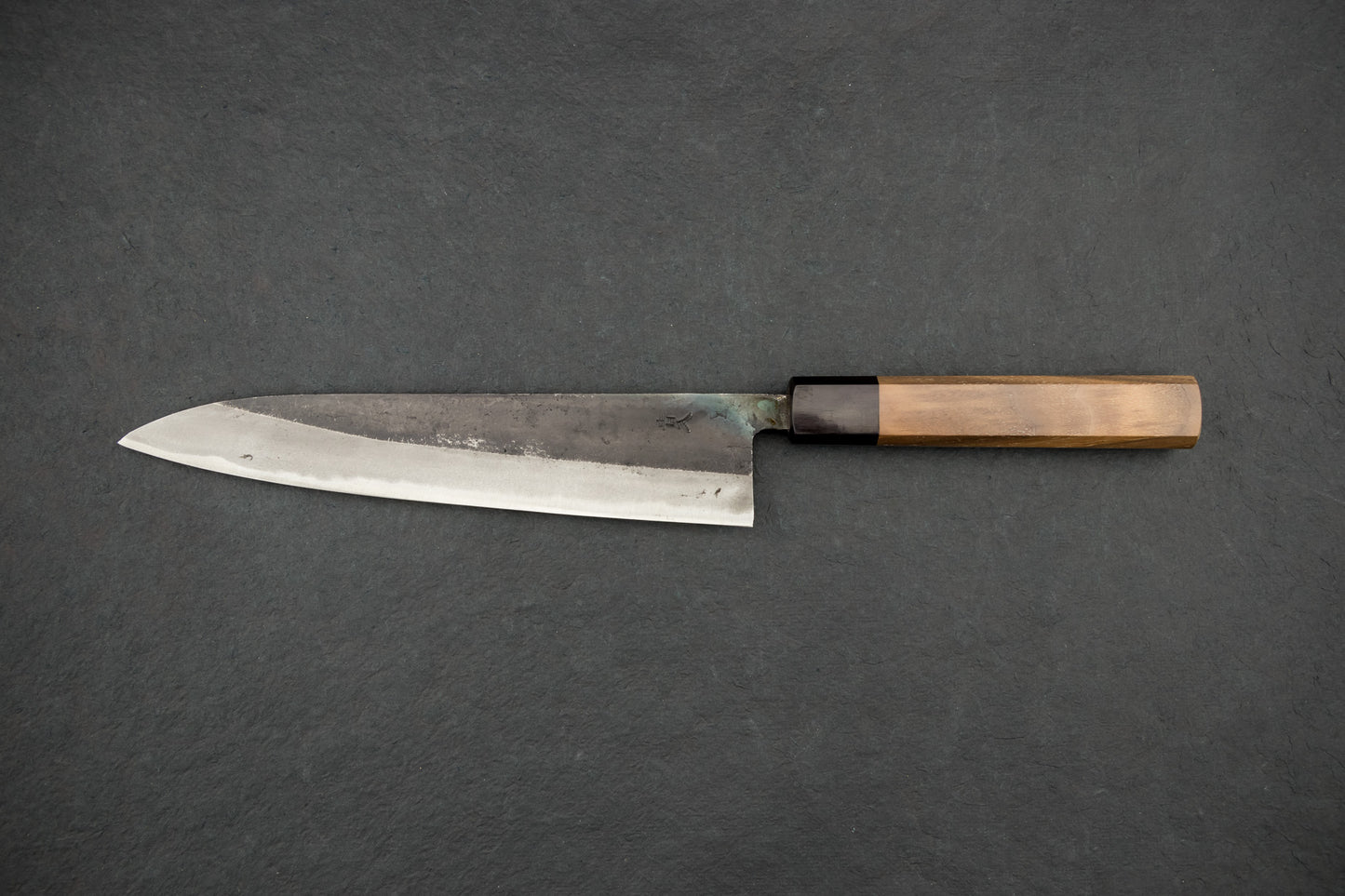 About the Shape - Inspired by the profile of a traditional European chef knife, Gyutos are a multi purpose knife with a slight meat cutting bias. “Gyuto” translates to “cow sword.” If you want one knife to do it all, This is it. Starting at 180mm, Gyutos can reach the ridiculously long (and awesome) 370mm. For the at-home or professional cook, we recommend a Gyuto which measures between 210mm and 270mm long.