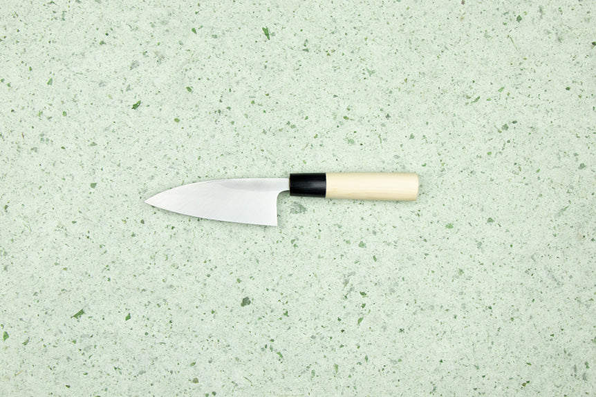 About the Shape -Deba means “short fat tooth” and this describes the shape of the knife. This is the first knife a sushi chef would use when preparing fish. It is used to fillet fish and butcher the boneless meat. The Deba is a traditional Japanese blade that is only sharpened on one side. This is called “single bevel.” Don’t let the shape and weight of a Deba fool you; they are nimble and precise. Choose the length of your Deba based on the size of fish you’ll be butchering most often.