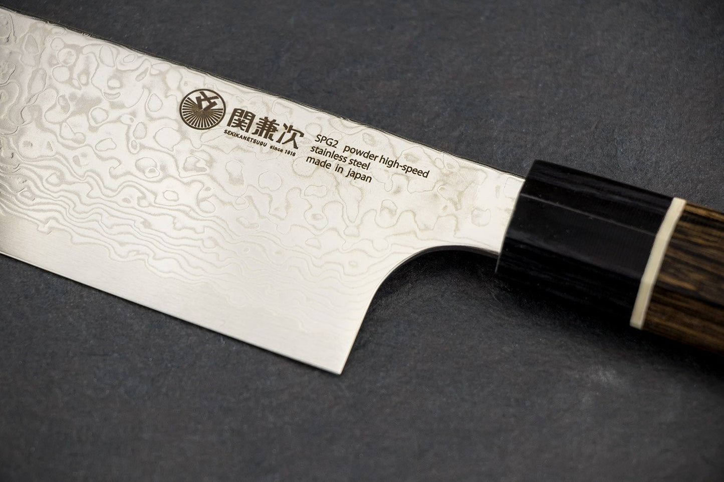 About Seki Kanetsugu Zuiun - Seki Kanetsugu is a knife maker in Seki, whose ancestor was a famous swordsmith Kanetsugu (1336-1392). The company itself was founded in 1918 and celebrated their 100 year anniversary in 2018. To celebrate their 100th year, they launched this knife line called “Zuiun”. This beautiful piece is made with SG2 with 62 layers of stainless Damascus outside. The blade is sharpened very thin and the taper is beautiful. Heptagon shaped handle is made with pakka wood for its strength. Although this is considered to be a machine-forged knife, it is perhaps at the highest level.